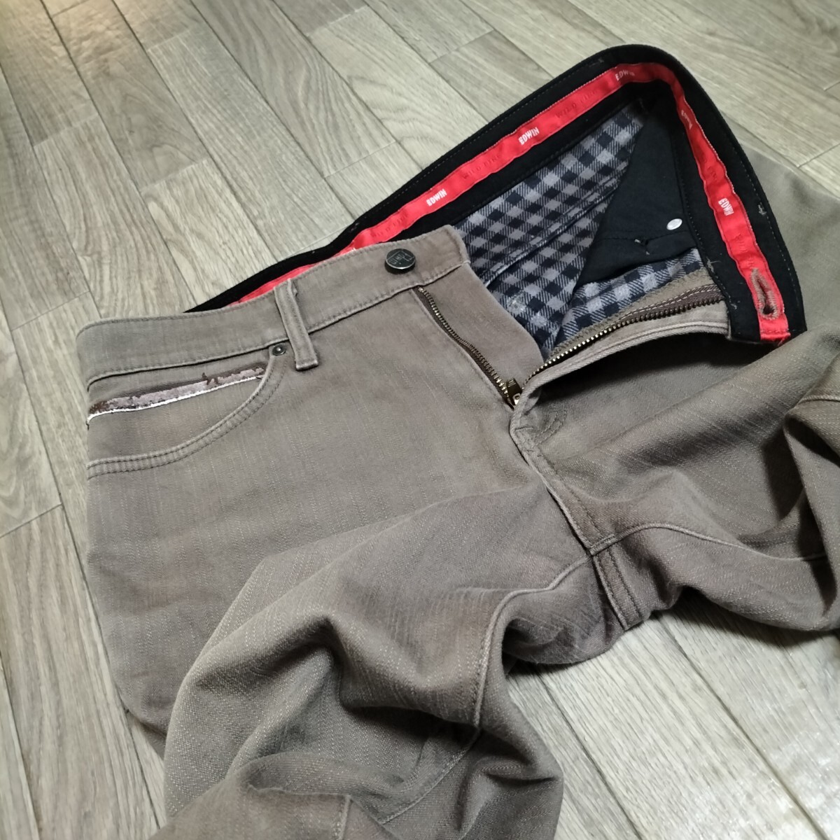 ★EDWIN WILDFIRE TGF503 ワイルドファイア ジーンズ ジーパン 防寒デニムパンツ 裏起毛 チェック柄 ストレート サイズ30 オールド エドウィン 日本製 希少 アメカジ ブランド古着 USED