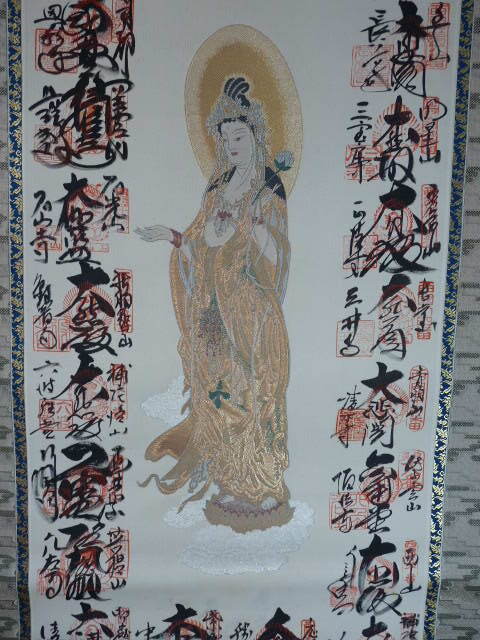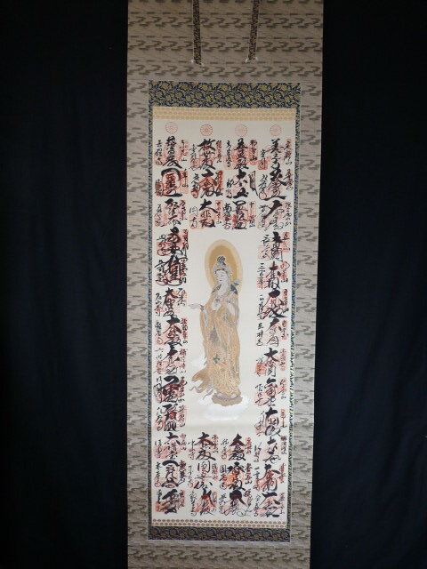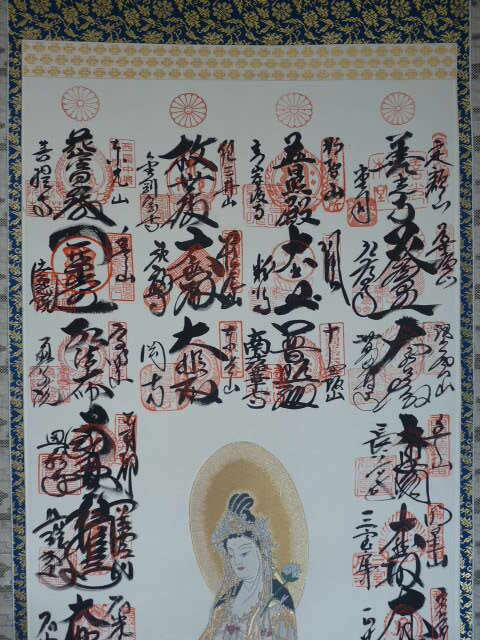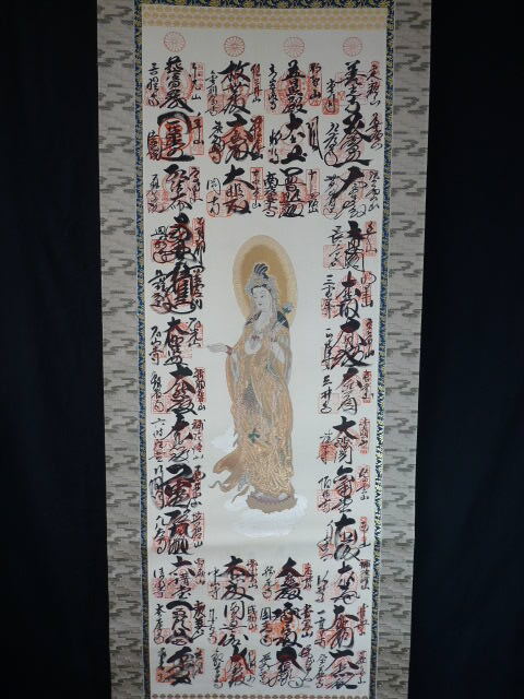 縁起の良い掛け軸 西国三十三ヶ所霊場巡礼拝 御宝印譜 桐箱付