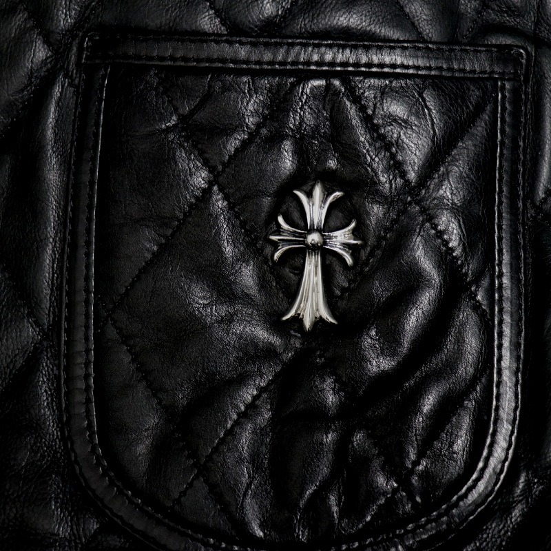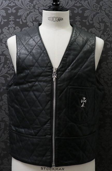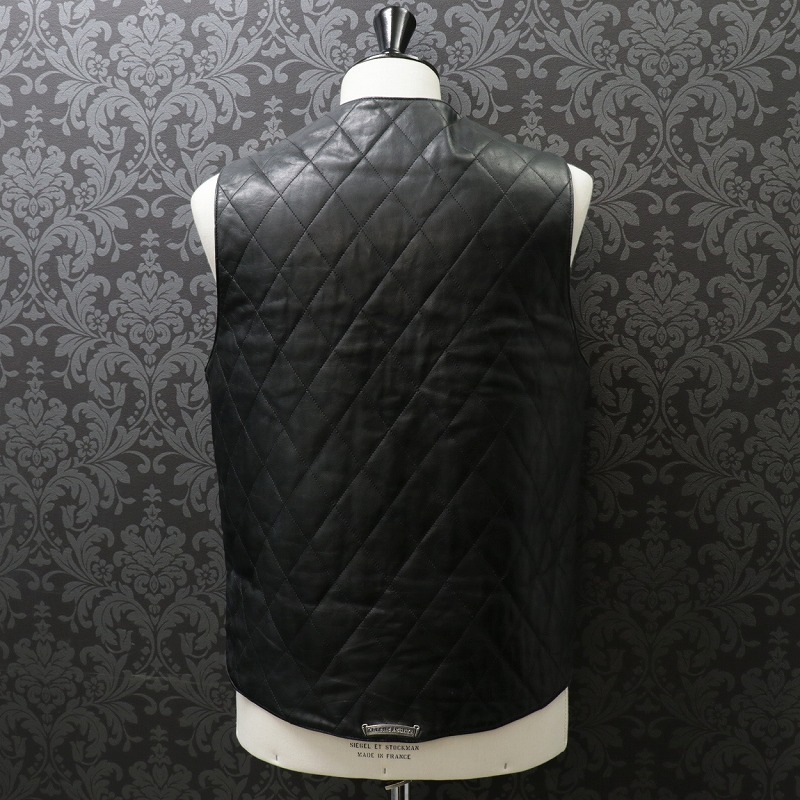 クロムハーツ フィッシャーマンベスト キルティングレザーベスト CHROME HEARTS M ブラック シープレザー 黒 レザージャケット
