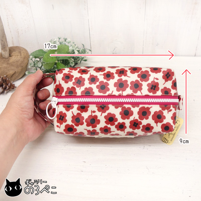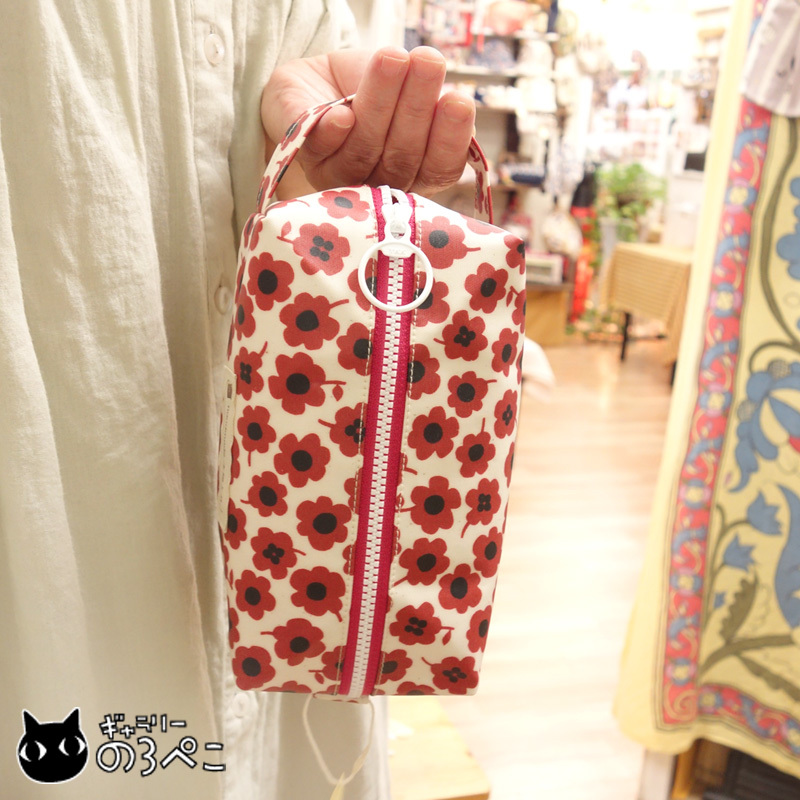 北欧テイスト花柄の持ち手付きボックスポーチ(赤色・ビニールラミネート素材) bc862-19