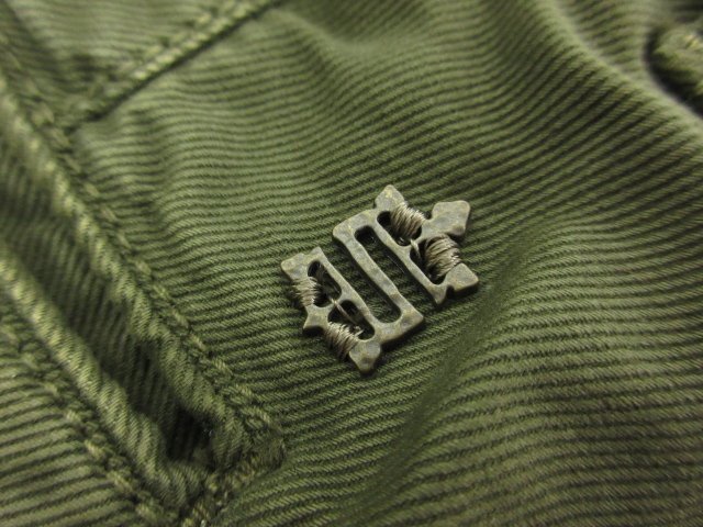 ・総丈約107センチ、ウエスト実寸約84センチ(4センチ出し詰め可能)、股上約24センチ、渡り幅約31センチ、股下約85センチ、裾幅約17.5センチ、裾はたたき仕上げです。