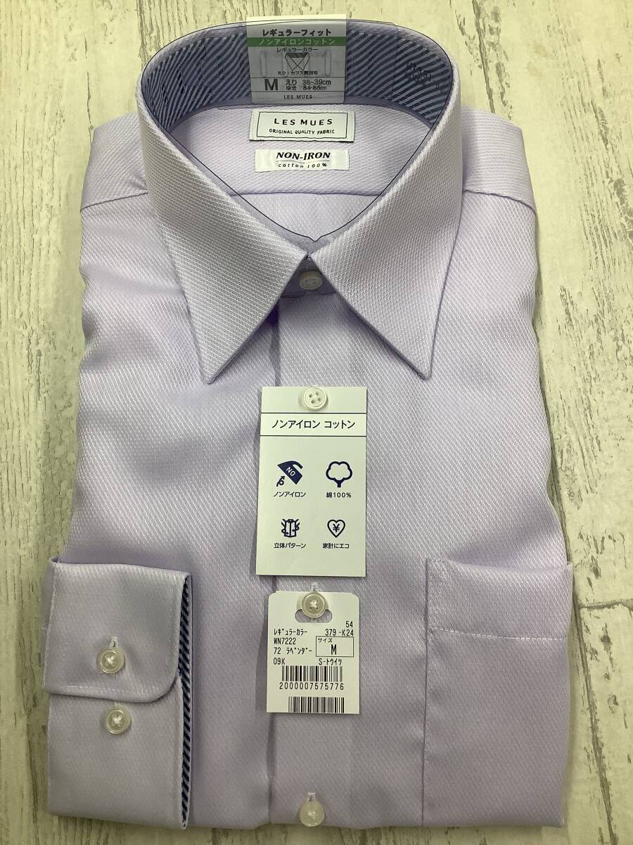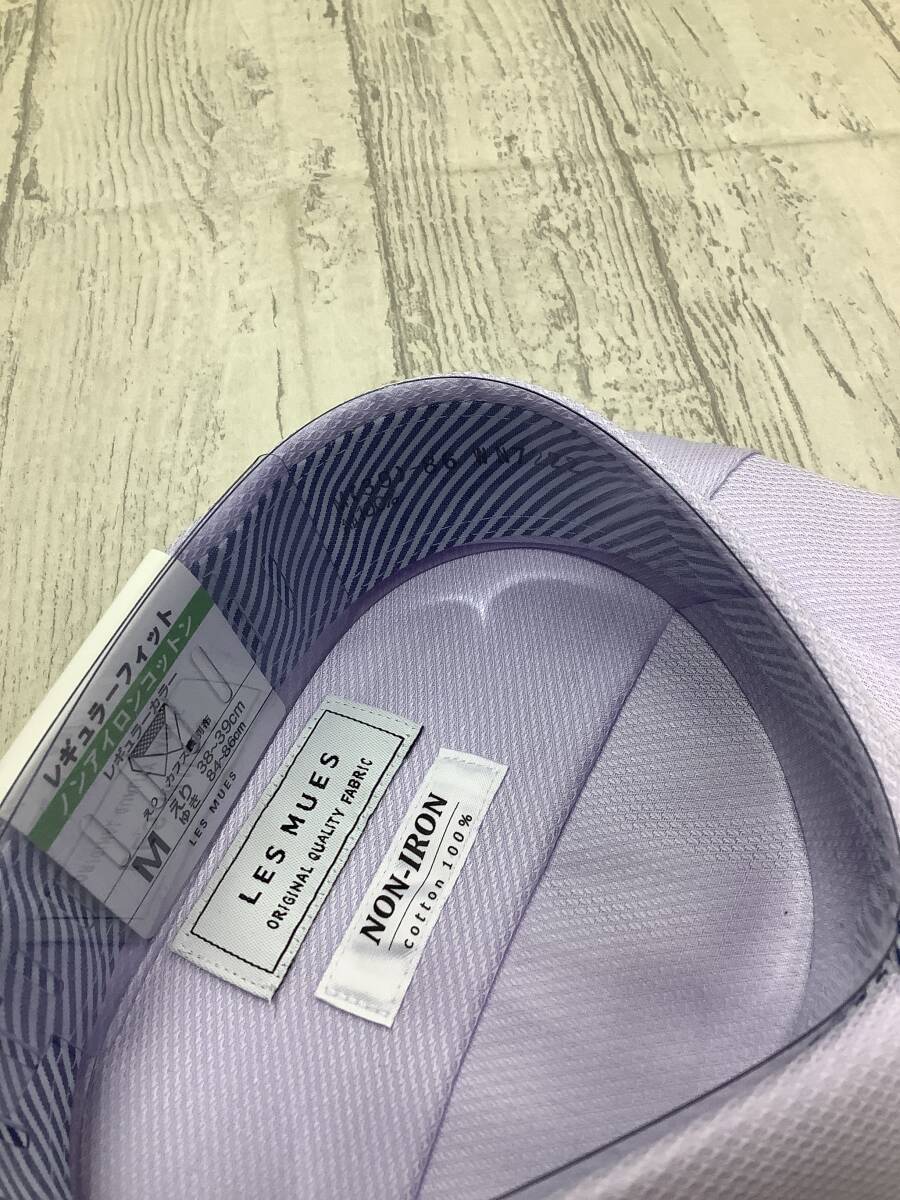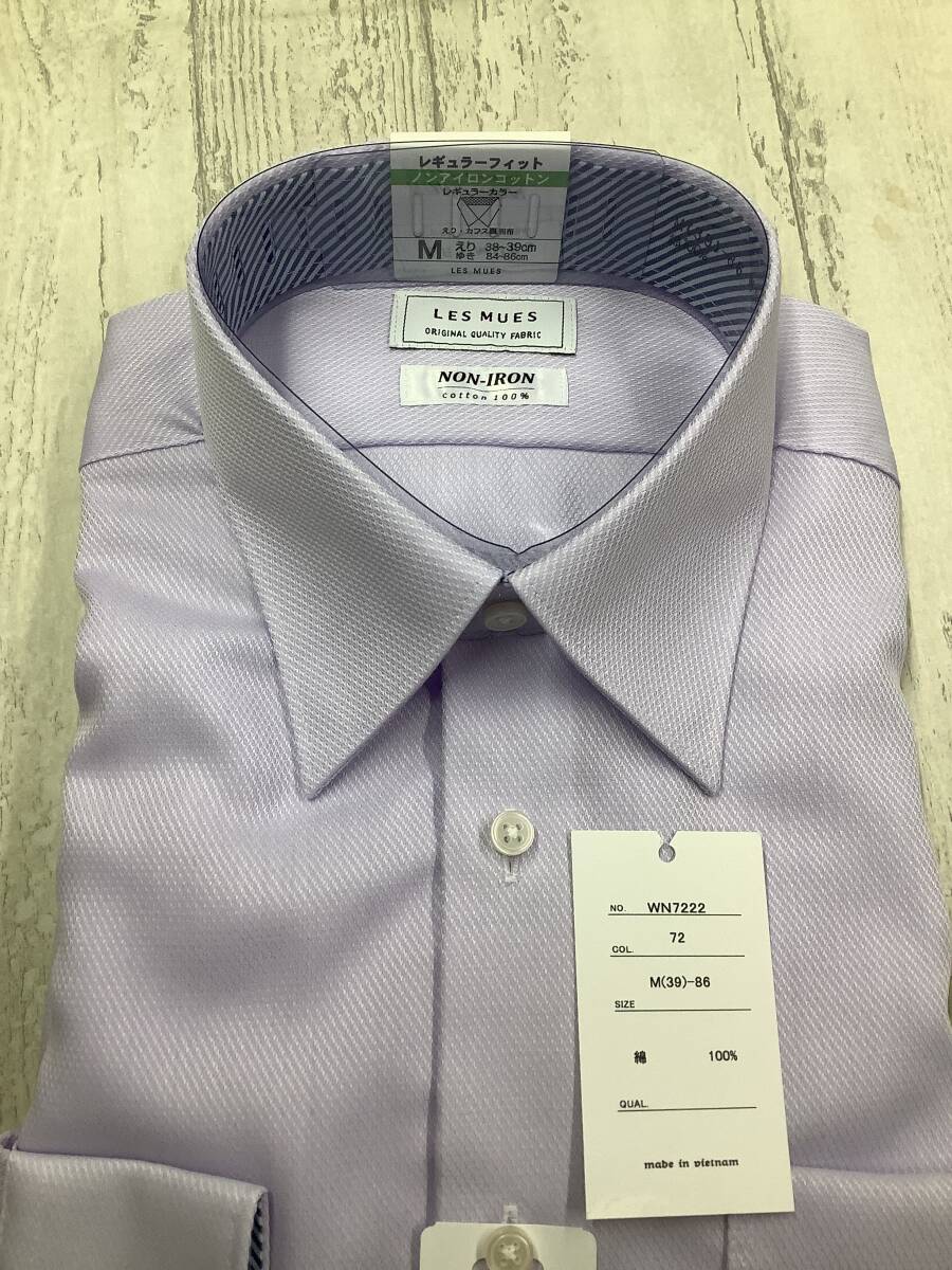 新品未使用★39-86 長袖Mサイズ ★淡いラベンダー色ドビー柄 レギュラーカラードレスシャツ 定価4,990円 ノンアイロンコットン