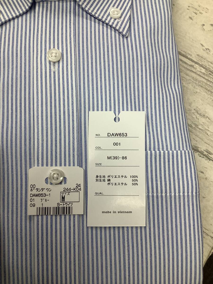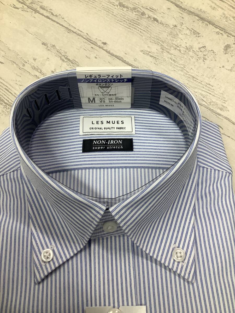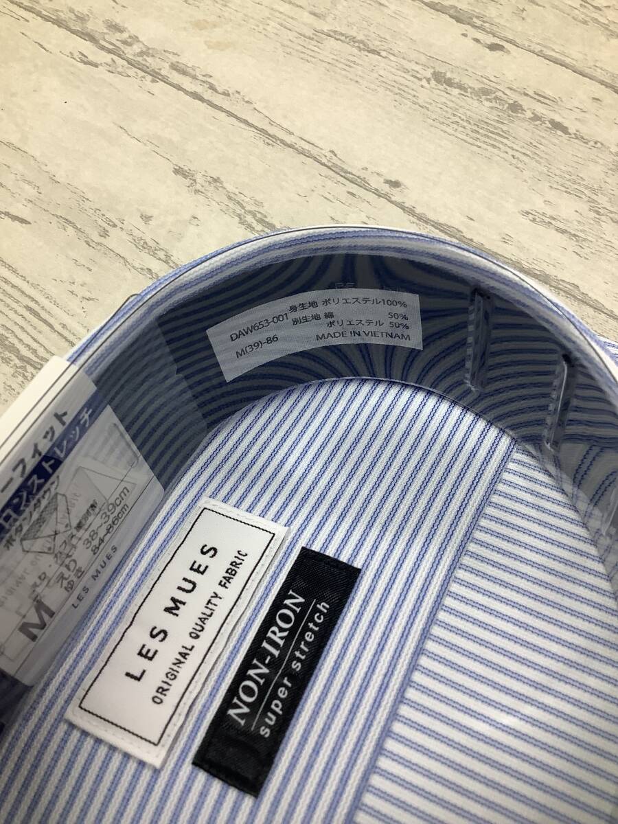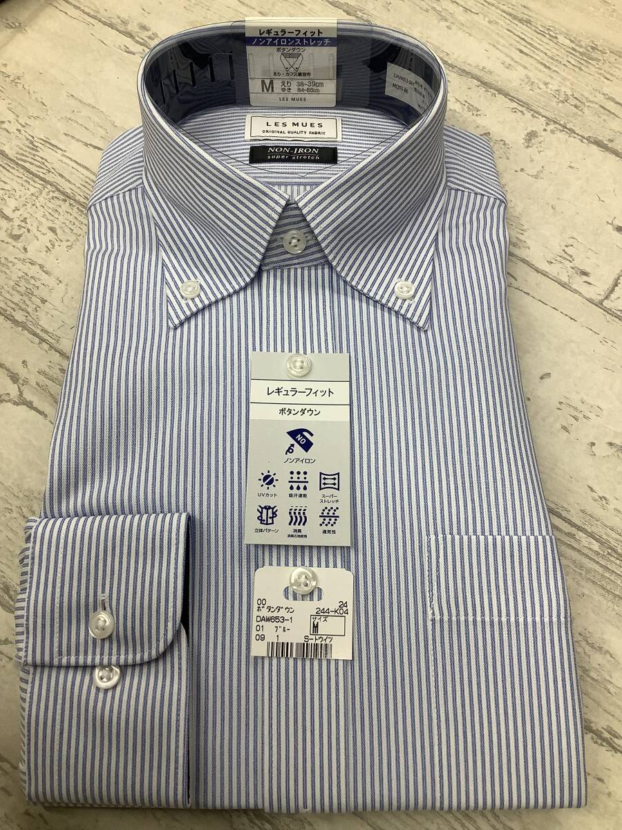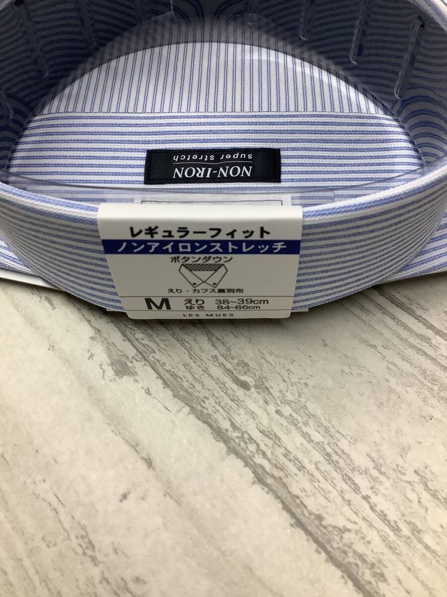 新品★39-86 長袖Mサイズ ★白ブルーニット素材 ボタンダウンカラー 定価4,990円 スーパーストレッチドレスシャツ