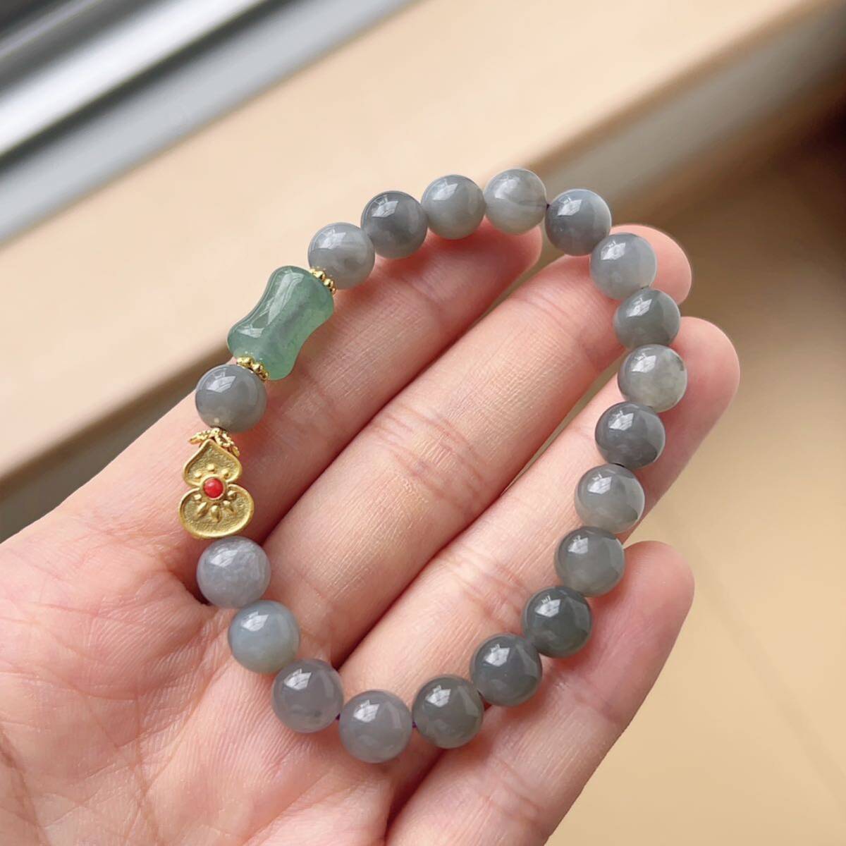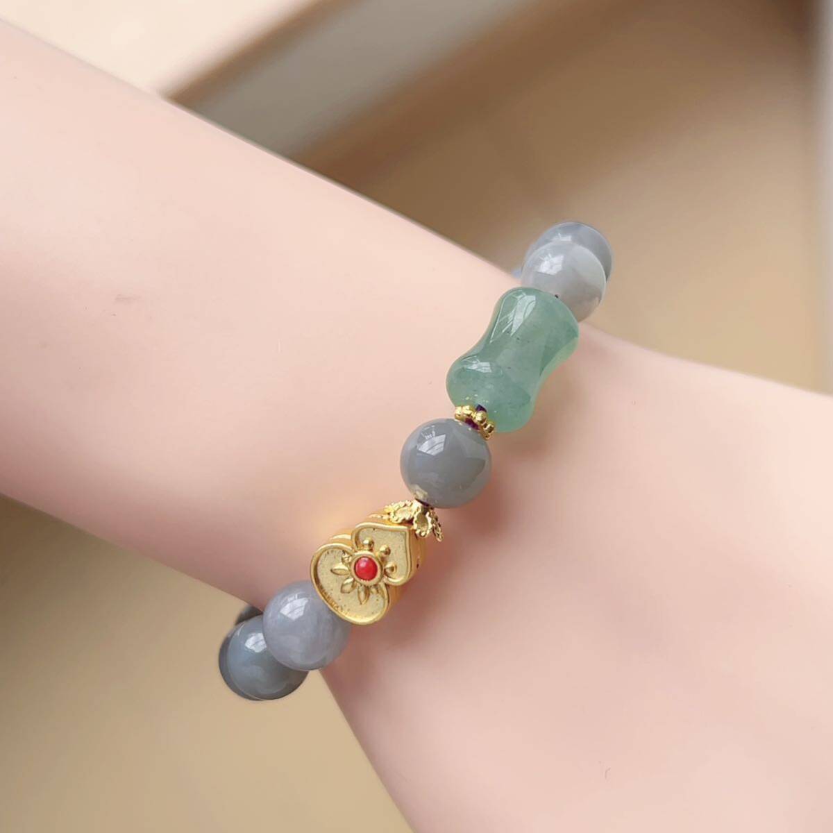 ◇和田玉+ アベンチュリン ◇ブレスレット◇パワーストーン◇天然石◇翡翠・ヒスイ◇巾着袋付き◇プレゼントにも 031B8286
