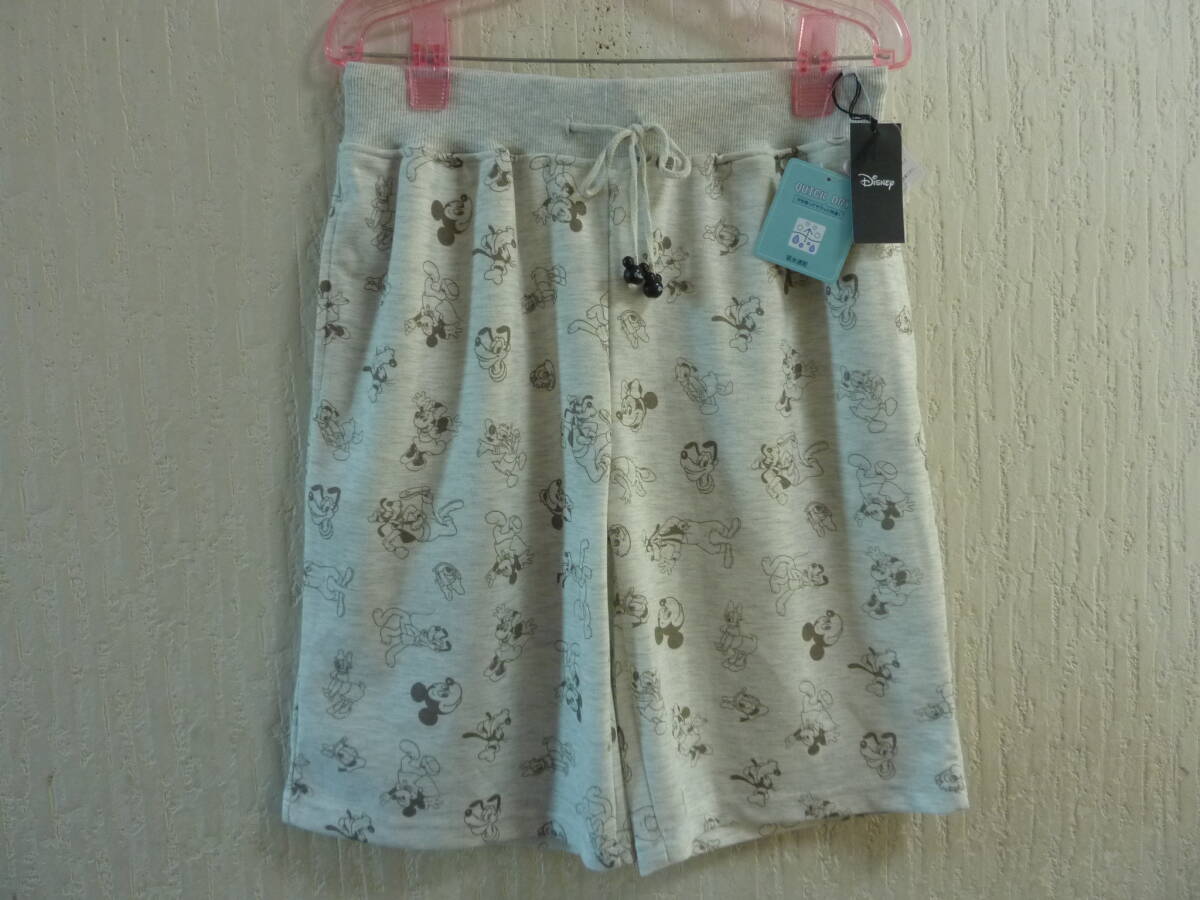 ★Disney☆ディズニーミッキー&フレンズ☆ハーフパンツ(可愛いマスコット付) 白杢☆レディースサイズL★はき心地抜群★新品未使用タグ付★