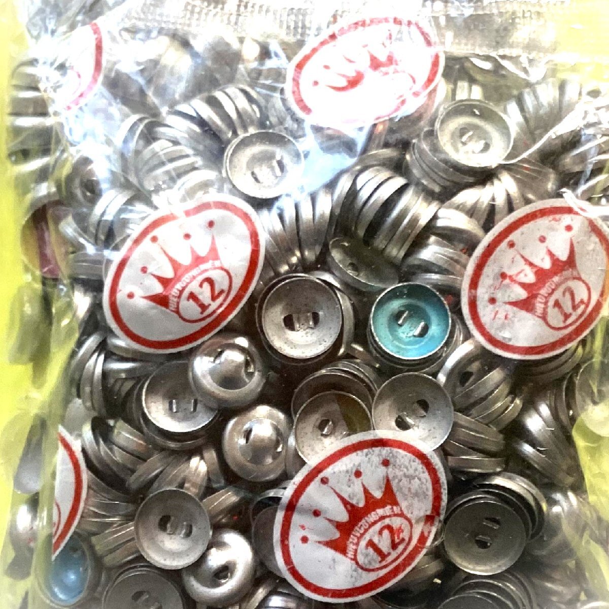 ※ 2023/4/11 再入荷いたしました。リサイクル素材を用いた、平くるみボタン金具、お得な500個セットです。※ リサイクル素材をカット&プレスして作られているため、裏面に印刷、小さな傷、汚れ等がある場合がございます。※ ボタン裏面の通し穴は、一般的な衣装製作用の、細い縫製針と糸が通せる穴となっておりますため、太い「ヘアゴム」や「ゴム用通し針」などは通らない場合がございます。「ヘアゴム制作目的」でお使いになられる場合は、ヘアゴムに別途、細い縫製糸で結ぶか、穴の口径の太い他メイカー様の「ボタン」と「専用打ち具」をお買い求めください。※ ご利用には同サイズの、専用「平くるみボタン用アタッチメント(打ち具)」が必要になります。※ 打ち具とボタンは必ず、同メイカーの製品をご利用ください。同じ口径であっても、盛り上がった部分の形状が異なるため、綺麗に仕上がらなかったり、打ち具からボタンが外れなくなるなどのトラブルが起きる可能性がございます。他メイカーの打ち具をご使用になられた場合のトラブルは、対応しかねますこと、ご了承ください。