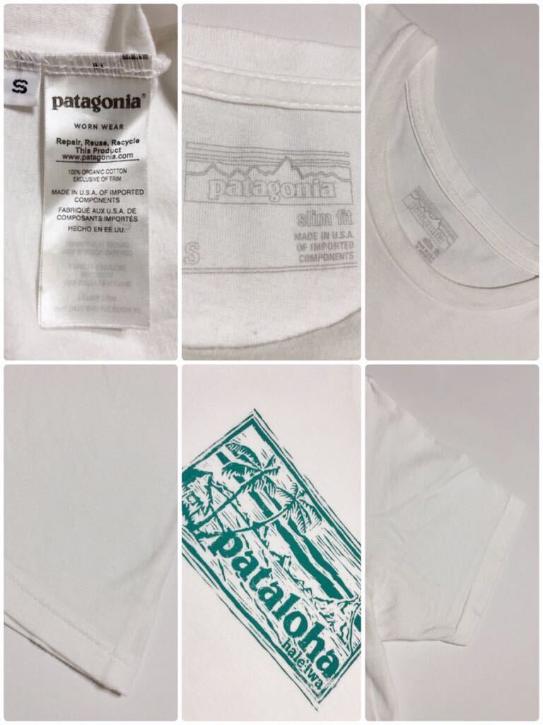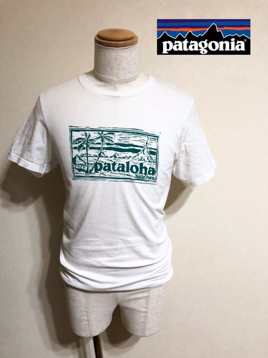 patagonia パタゴニア アウトドア ハワイ限定 パタアロハ ビッグロゴ オーガニックコットン Tシャツ サイズS 半袖 スリムフィット 白