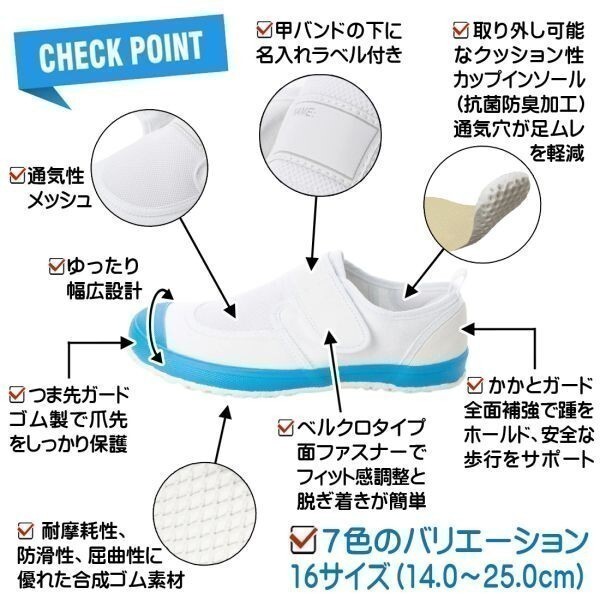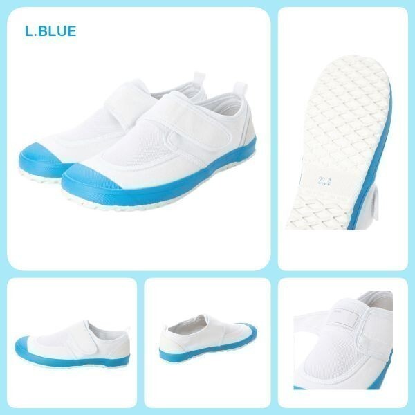 23999 上履き ライトブルー 15.0cm 上靴 体育館シューズ 抗菌 防臭 防滑 ゴム底 幅広 メッシュ マジックテープ ジュニア キッズ