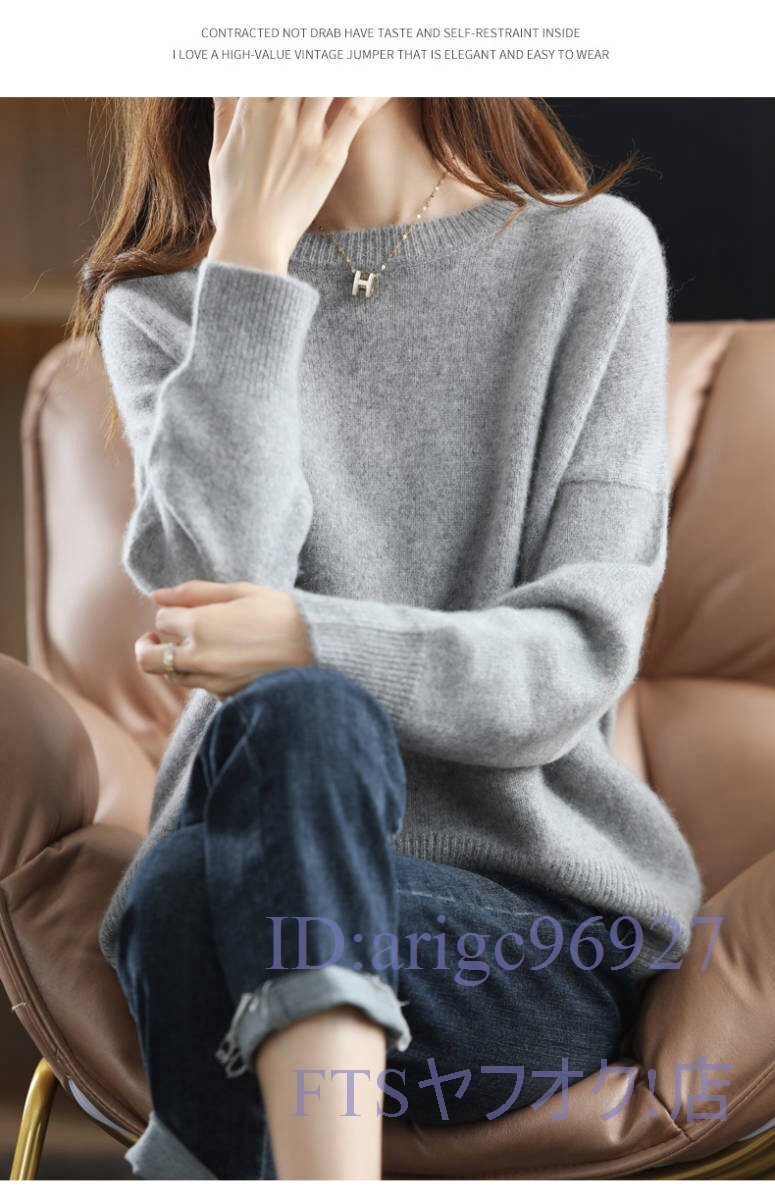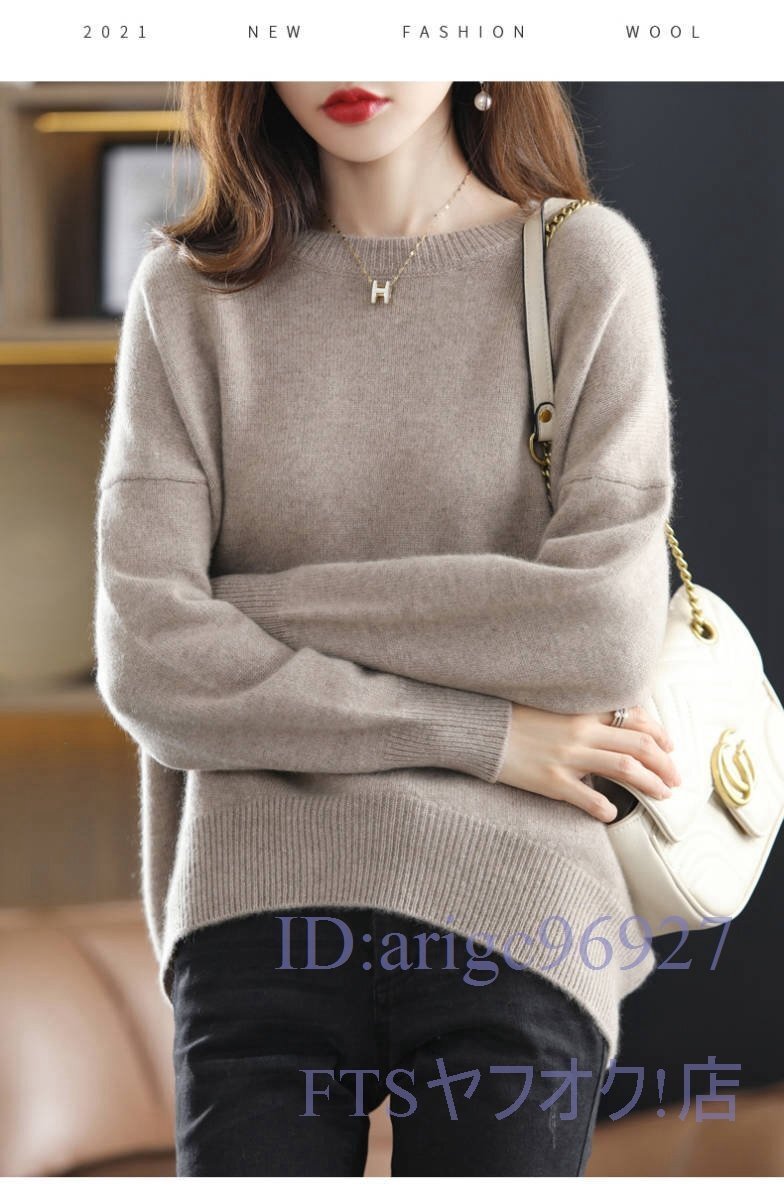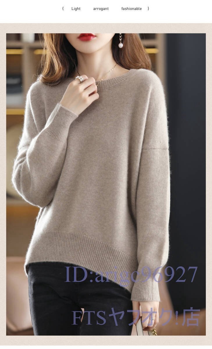 A0593☆新品ゆったり 20304050代 おしゃれ ミンクカシミヤ混 気質良い 柔らかい 暖かい トップス ルーズニットセーター*カーキ