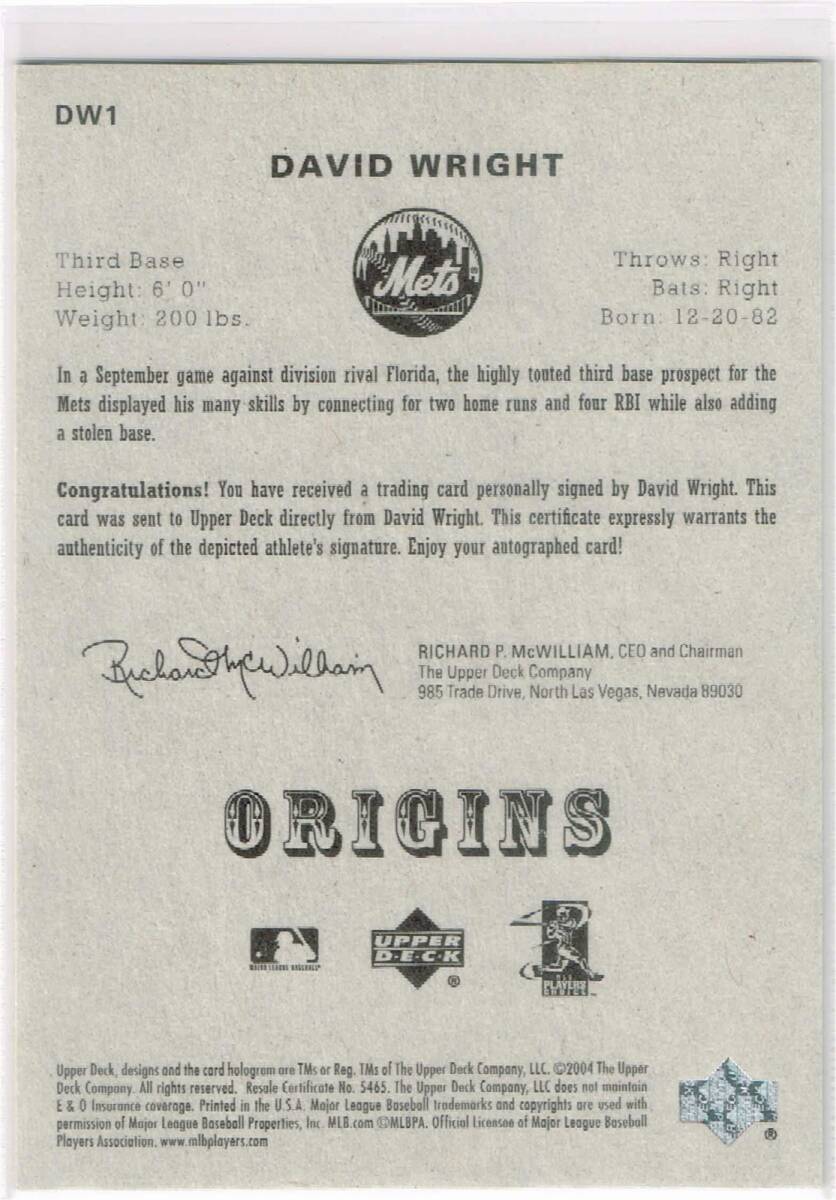 MLB メジャーリーグ ベースボールカード の 2005 UD Origins Signatures Autograph #DW1 David Wright です。 終活のため、コレクションとして長年保管していたものを出品いたします。思い入れがあるカードですので大切にしてくださる方のお手もとに行くことを願っております。 サイズは90mm × 63mmです。 カードは入手後スリーブ、トップローダーに入れて暗所にて保管しております。一般的な常識の範囲内で保管をしておりました。その他初期傷や経年による自然劣化などはご容赦ください。カードの両面の画像を掲載しておりますのでご確認ください。 当方、喫煙者はおりません。 その他、何かご質問がございましたらお問合わせください。 | |