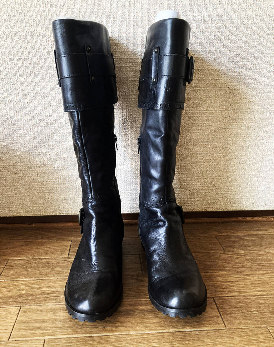 サイズは37とありますが 普段22.5-23cmをお履きの方向けです。 ヒール 2.5cm 全体の高さ 39.5cm 素人採寸ですので、多少の誤差はご容赦くださいませ。 イタリア製の本革ブーツです。