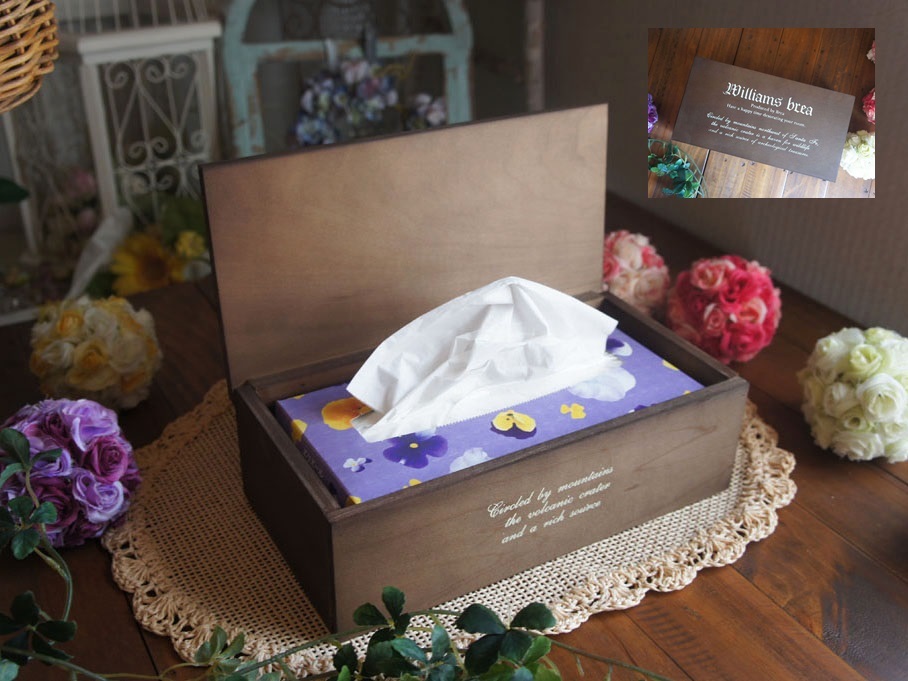 毎日使う生活感のでやすいティッシュもフタ付きの素敵な木箱のケースだと
