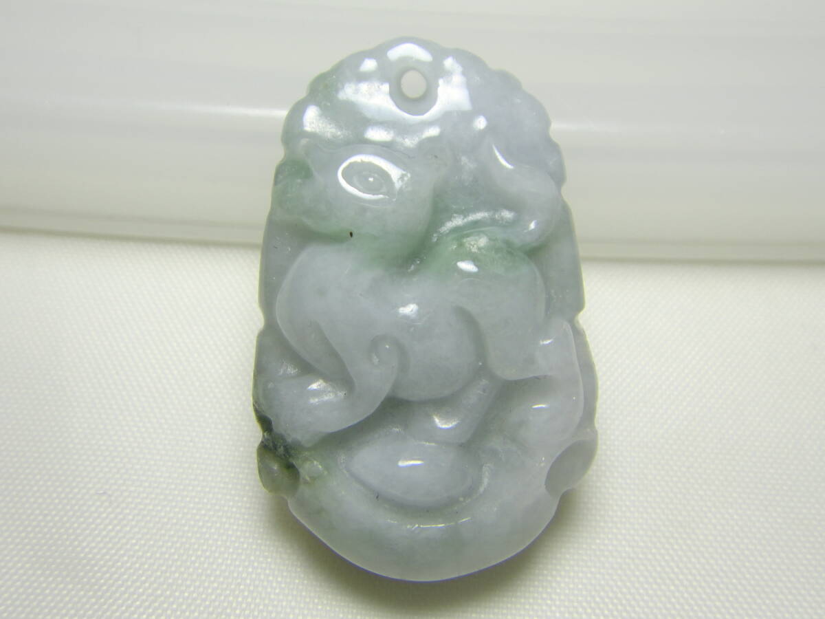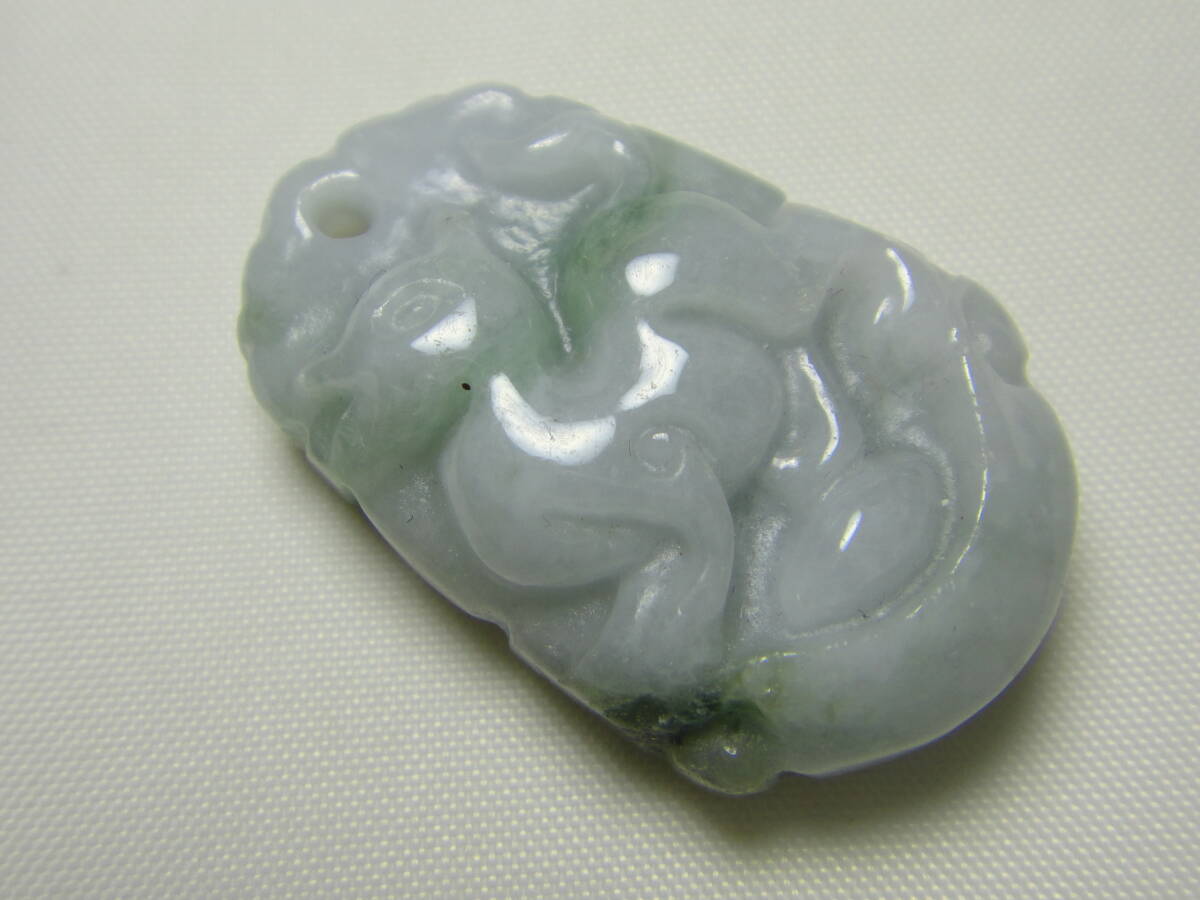 天然石 本翡翠 十二支 戌 犬 ペンダントトップ C027