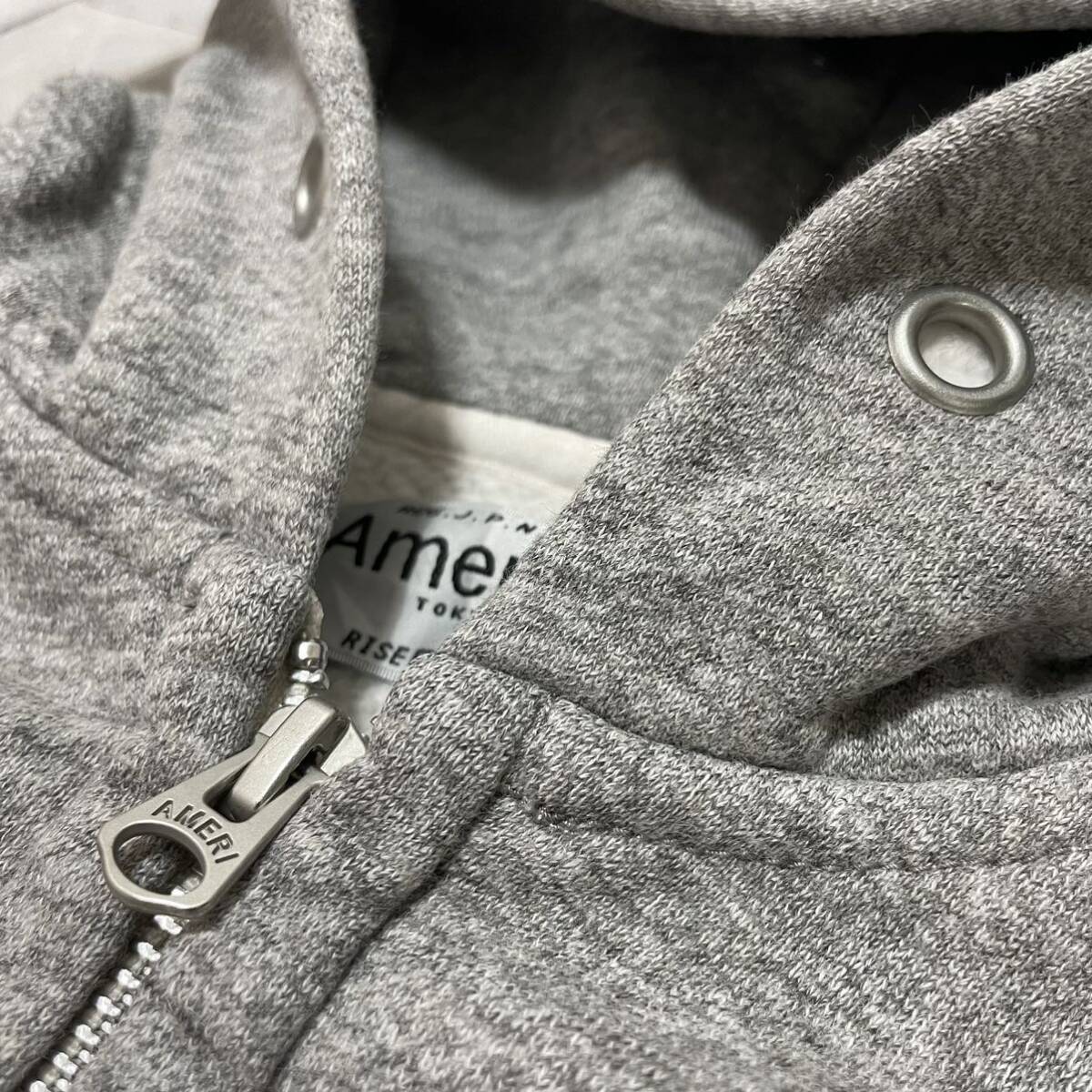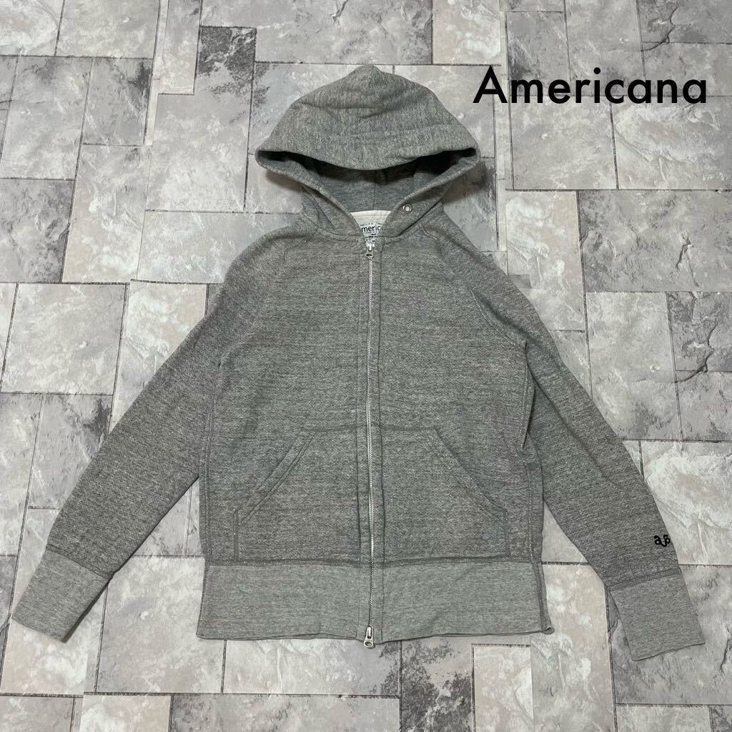Americana アメリカーナ sweat hoodie スウェットパーカー ダブルジップ 刺繍ロゴ 裏起毛 日本製 グレー サイズS レディース 玉FL3677
