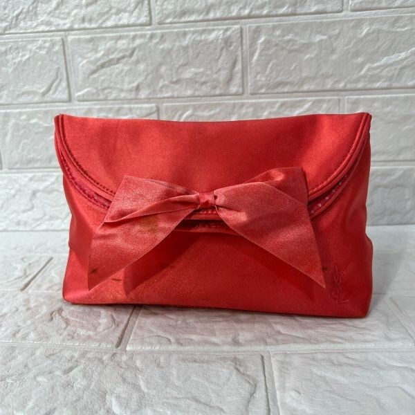イヴサンローラン Yves Saint Laurent リボンミニポーチ オレンジ DB077 | |||