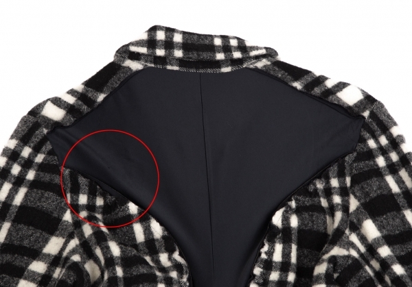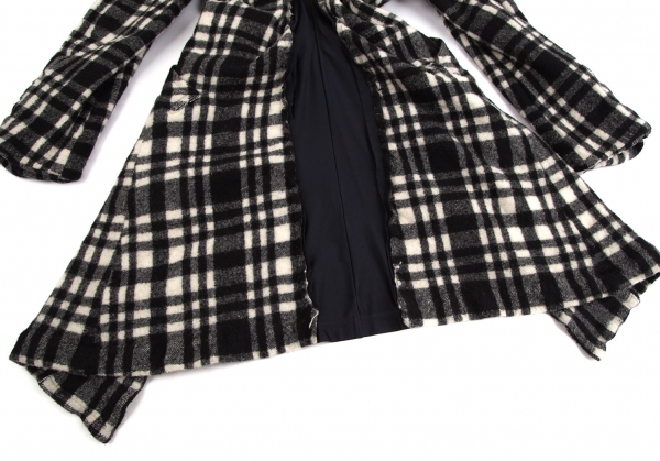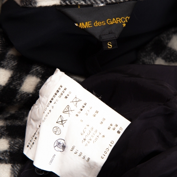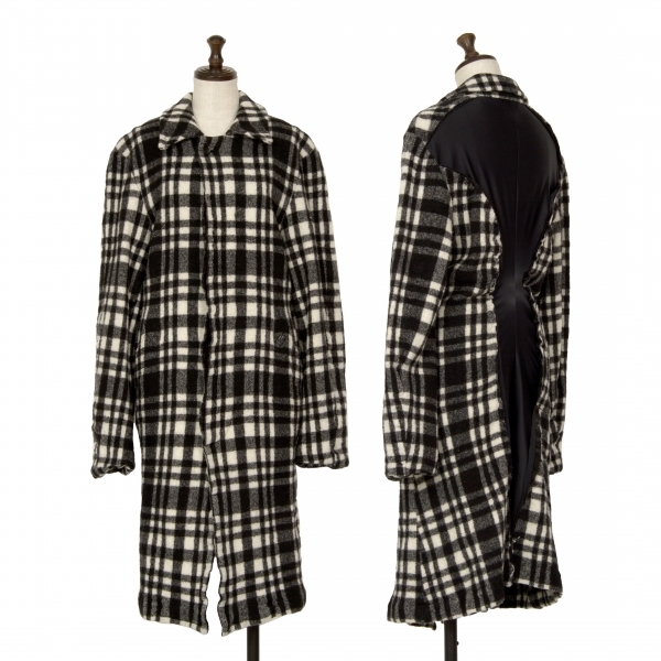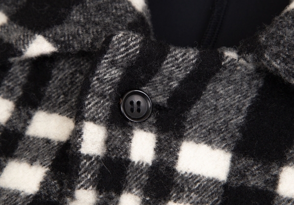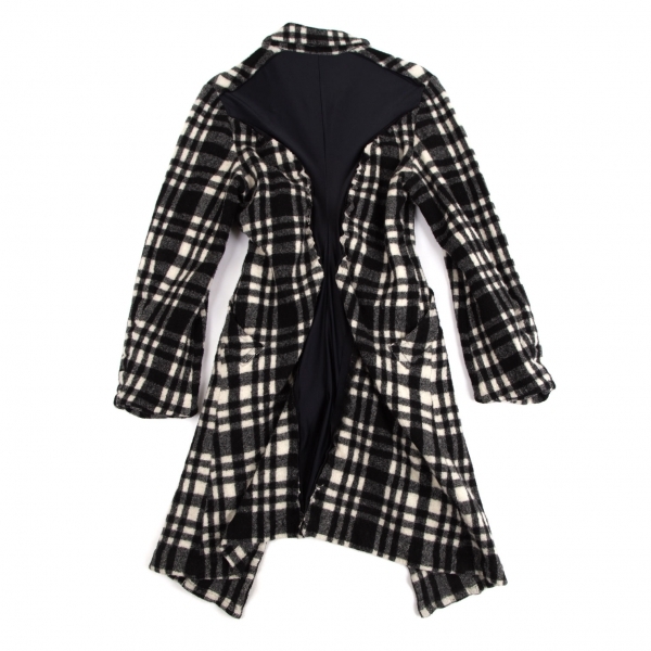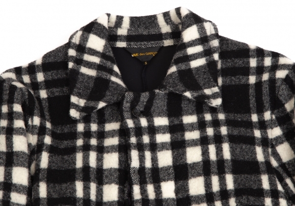 | コムデギャルソンCOMME des GARCONS バックストレッチ切替縮絨チェックコート 黒白S |