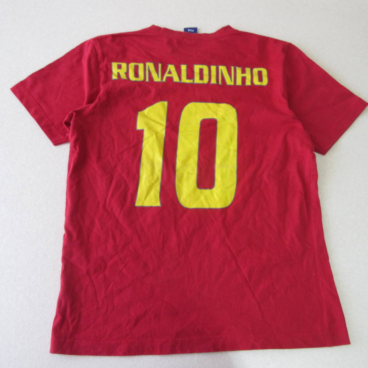 ○良品 FCバルセロナ オフィシャル◆サッカー スペイン バルセロナ Tシャツ カットソー 半袖 10番 ロナウジーニョ◆メンズ レッド Lサイズ