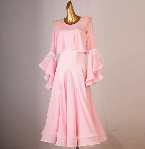 上質新品 人気 レディース社交ダンス衣装 サイズセミオーダー対応 モダンダンス練習ドレス ピンク S~2XLサイズ選択可