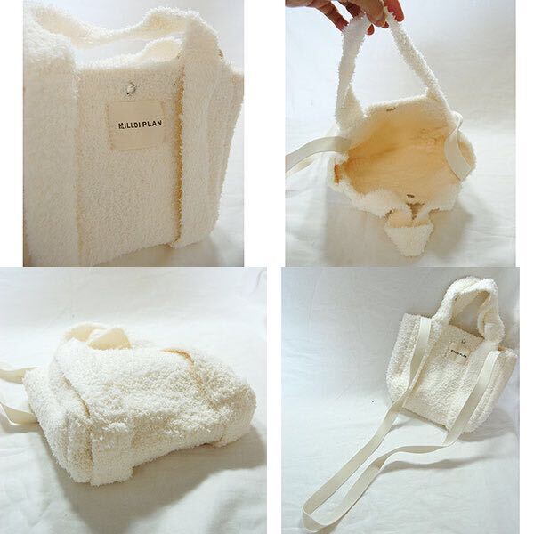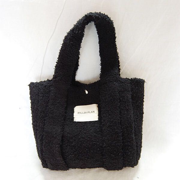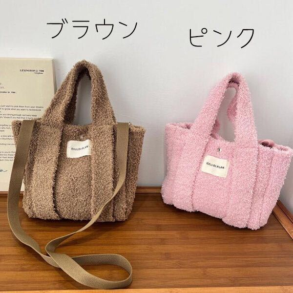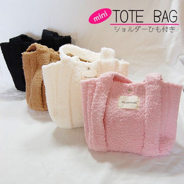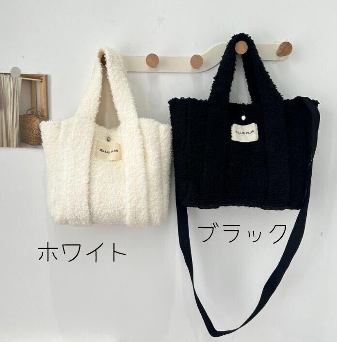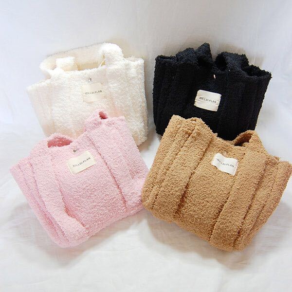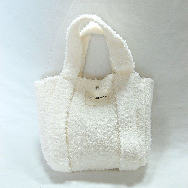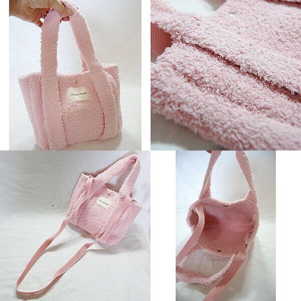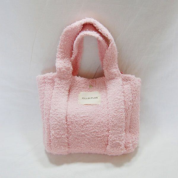 起毛素材のもこもこしたかわいいバッグです。小さめでちょっとしたお出かけに便利です。ななめ掛けもできるので、手がふさがらずにショルダーバッグとしても使えます。