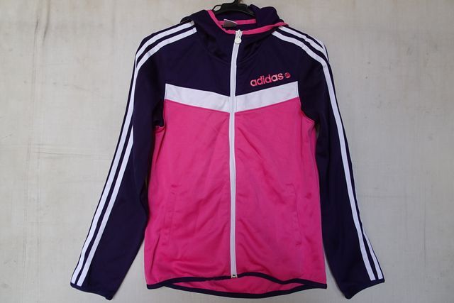 adidas NEO LABEL/アディダス/長袖パーカ/トラックジャケット/ジャージ素材/前ジップ/白ライン/ツートン/紫/パープル/ピンク/Mサイズ(9/9R)