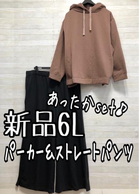 新品☆6L♪あったかセット♪裏起毛パーカー&フリース風パンツ☆f889