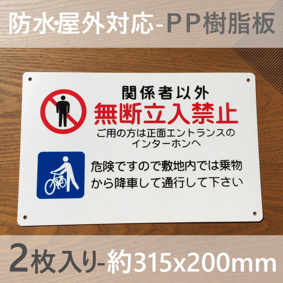 2枚入PP板 無断立入禁止看板 立ち入り禁止 不法侵入 不審者対策 関係者以外 パネル看板 注意看板 プレート看板 案内板 侵入防止 私有地看板