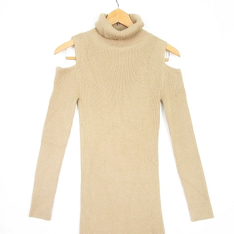 エゴイスト EGOIST ニット ワンピース 長袖 タイト オープンショルダー ベージュ kz9181 レディース