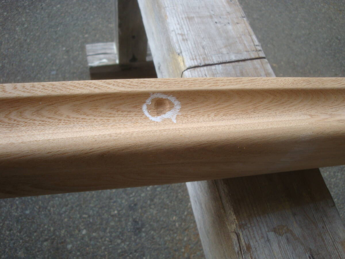積層タモ かまぼこ型手摺 無塗装 乾燥材です。