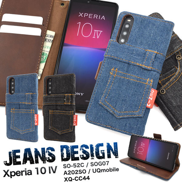 Xperia 10 IV SO-52C SOG07 A202SO用ジーンズ調デニム生地デザイン手帳型スマホケース