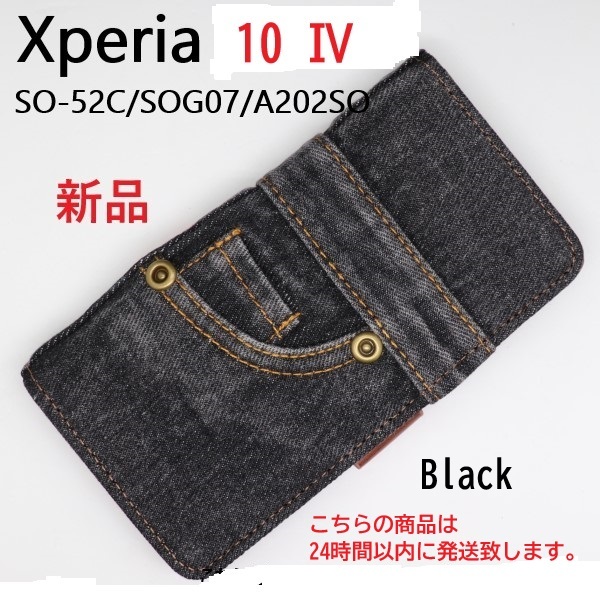 即日発送新品「ブラック」Xperia 10 IV SO-52C SOG07 A202SO XQ-cc44 用ジーンズデニムデザイン手帳型スマホケース SO52C sog07 a202so DUM