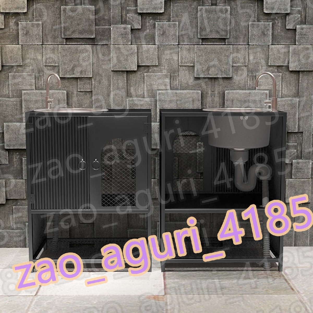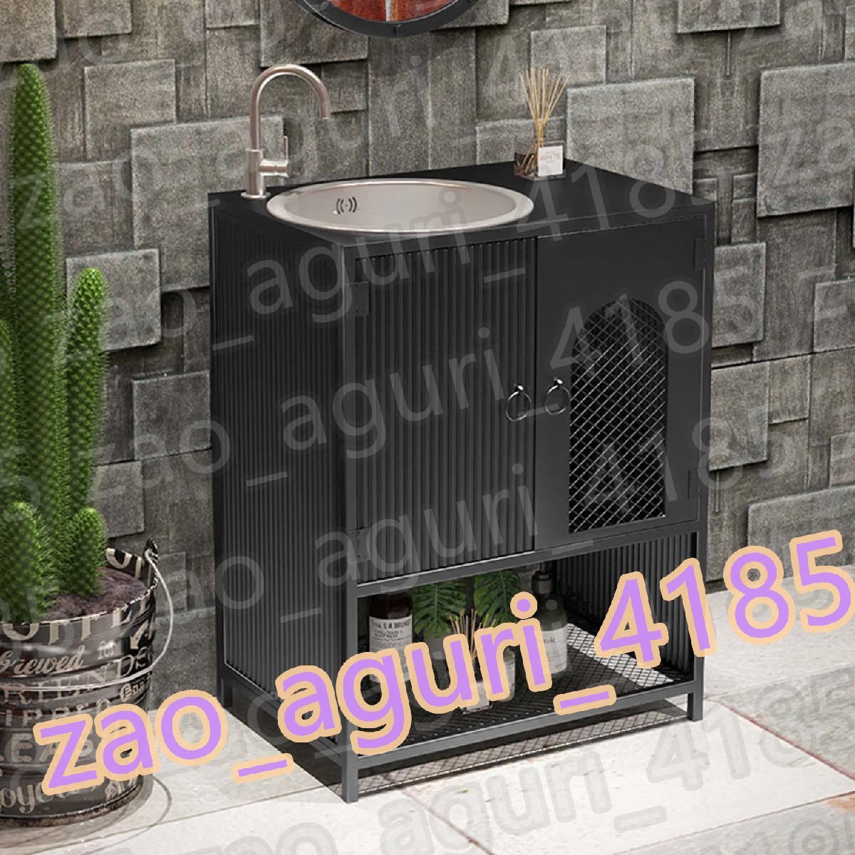 洗面化粧台 洗面ボウル 2枚扉付き 大容量 簡易 インダストリアルスタイル洗面台 収納に便利 置き型 ミラーキャビネット 排水セット付き ドレッサー 収納 浴室/アウトドア工場/業務用 家庭用 (ミラーを含まない) (Color : Black)