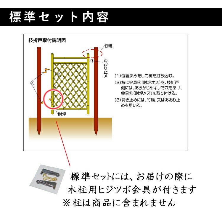 説明 | 人工竹枝折戸(しおりど)は、和・洋どちらの建築物にもよく似合います。 |