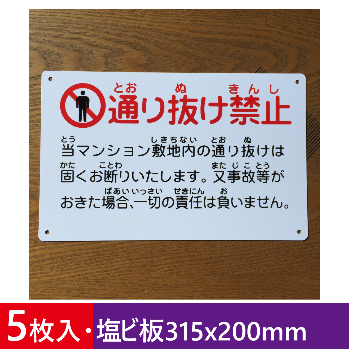 5枚入塩ビ板 通り抜け禁止表示板 私有地看板 立ち入り禁止 関係者以外 進入禁止 プレート パネル看板 屋外 案内板 防水屋外対応 日本製