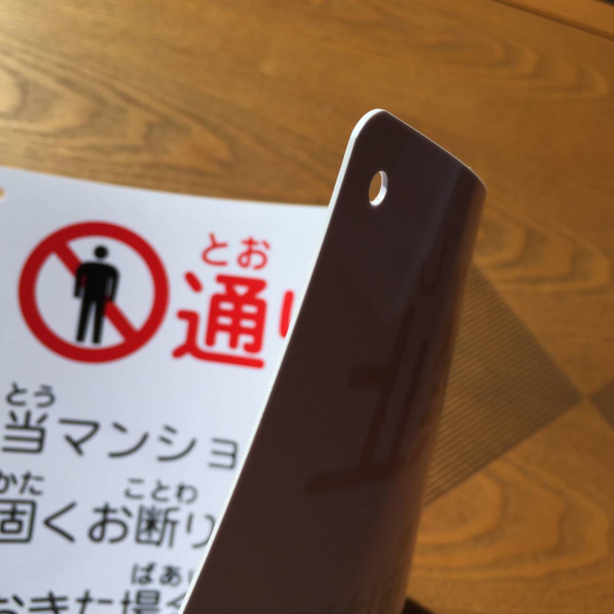 加工:シルクスクリーン印刷(屋外長期耐候インキ使用)、4角にそ5.0mm穴あけ済みで取付簡単. 外壁やフェンスに取り付