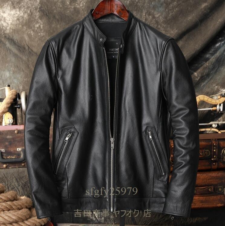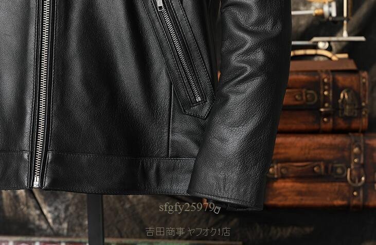 A7001新品秋冬 レザージャケット 上品 本革 牛革 ライダースジャケット 革ジャン 黒S~5XL 黒