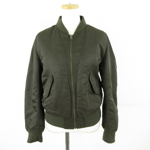 ユニクロ UNIQLO MA-1 ブルゾン ジップアップ 長袖 オリーブ 緑 M *A322 レディース