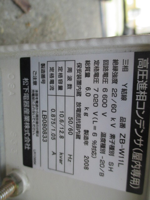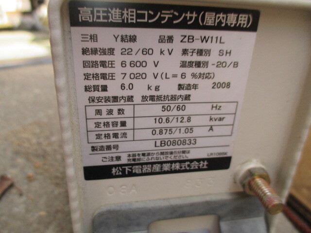 松下電器 圧進相コンデンサ ZB-W11L 高 油入式屋内専用   2008年製  (D3-1)