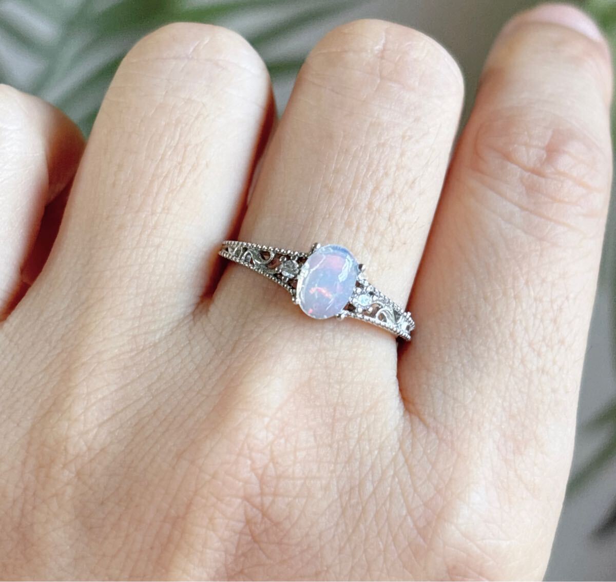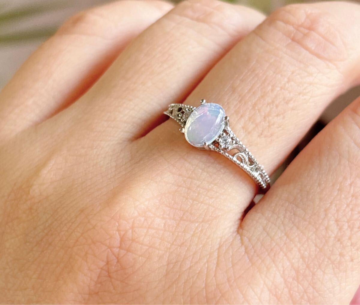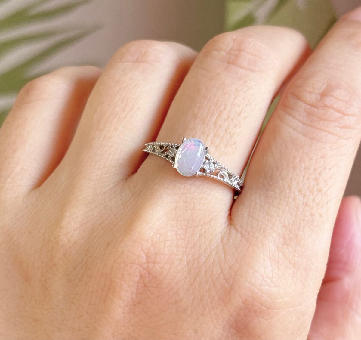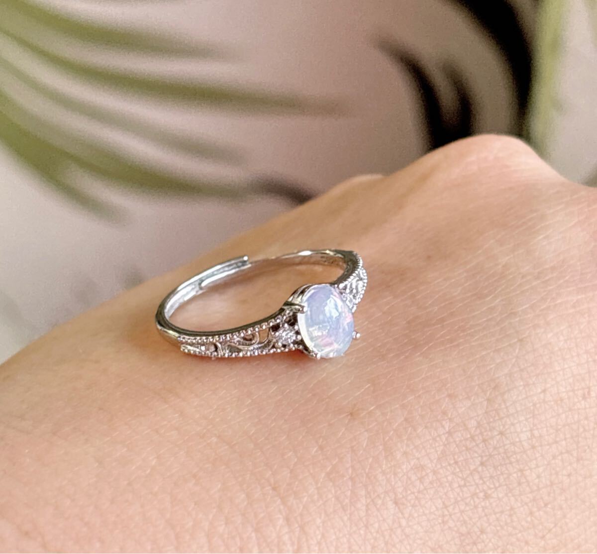 天然石 シルバーオパール リングのサイズ約:5.2mm*7mm*厚さ4.6mm;