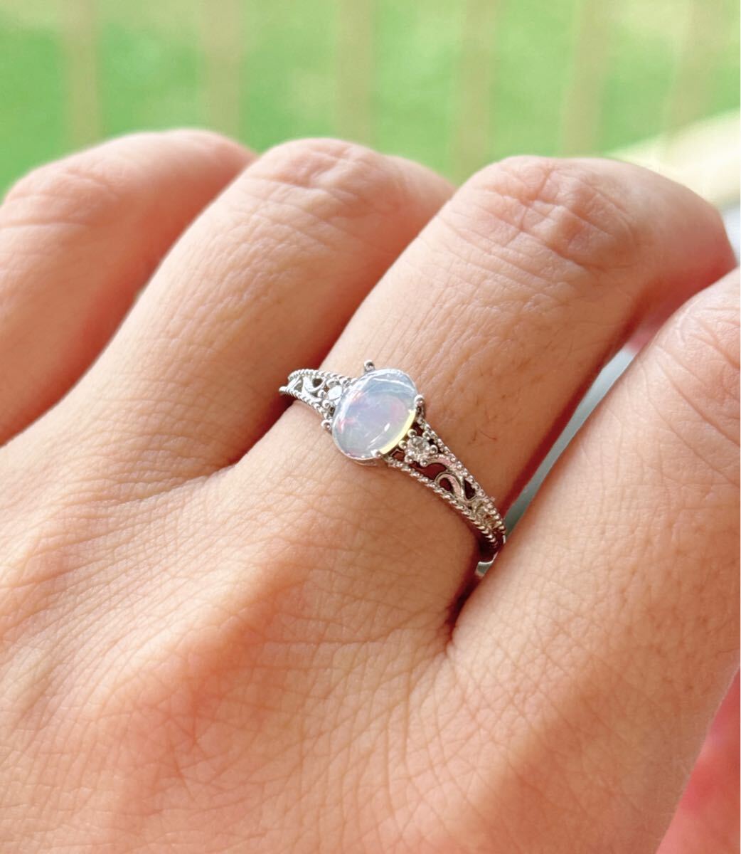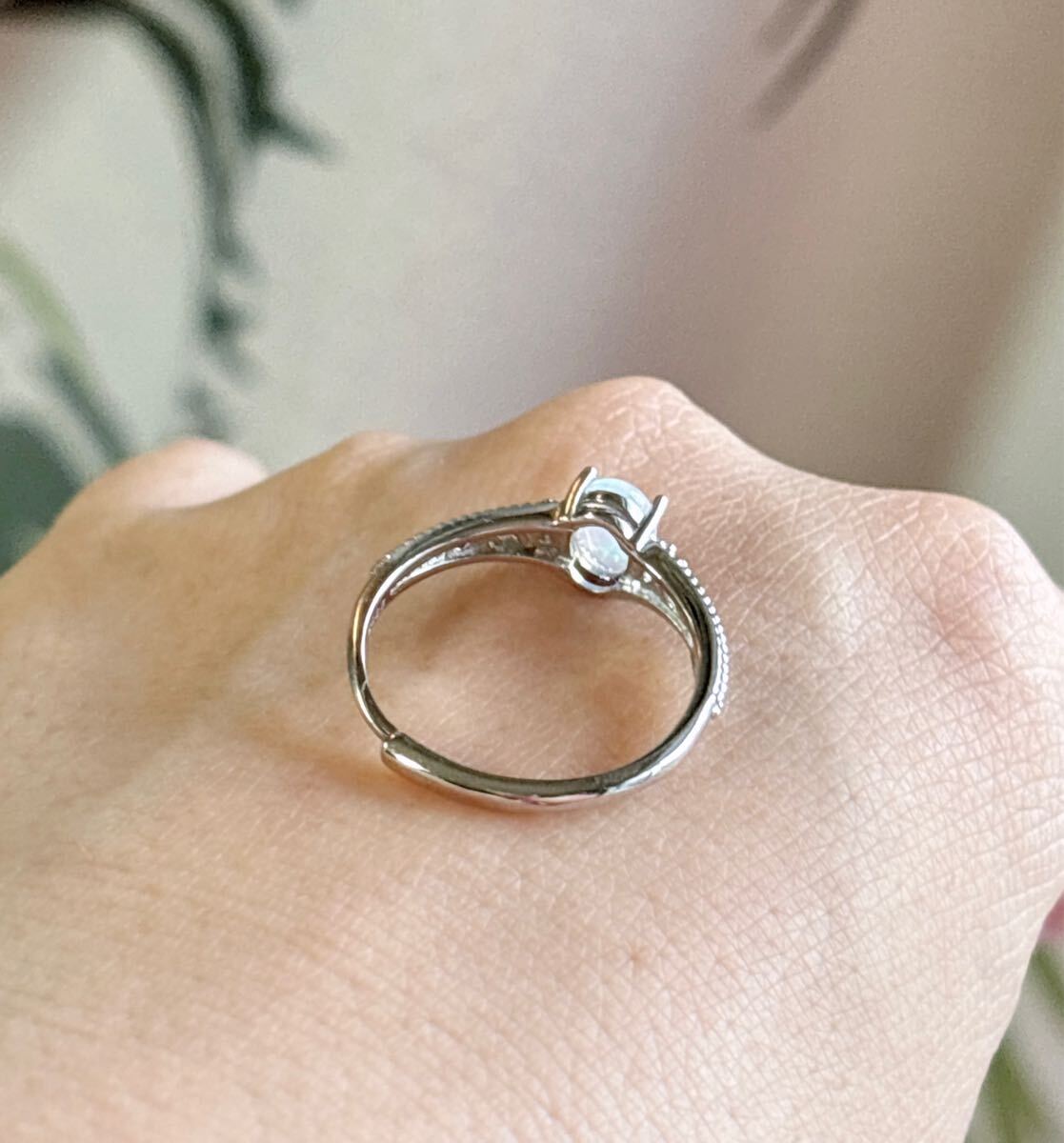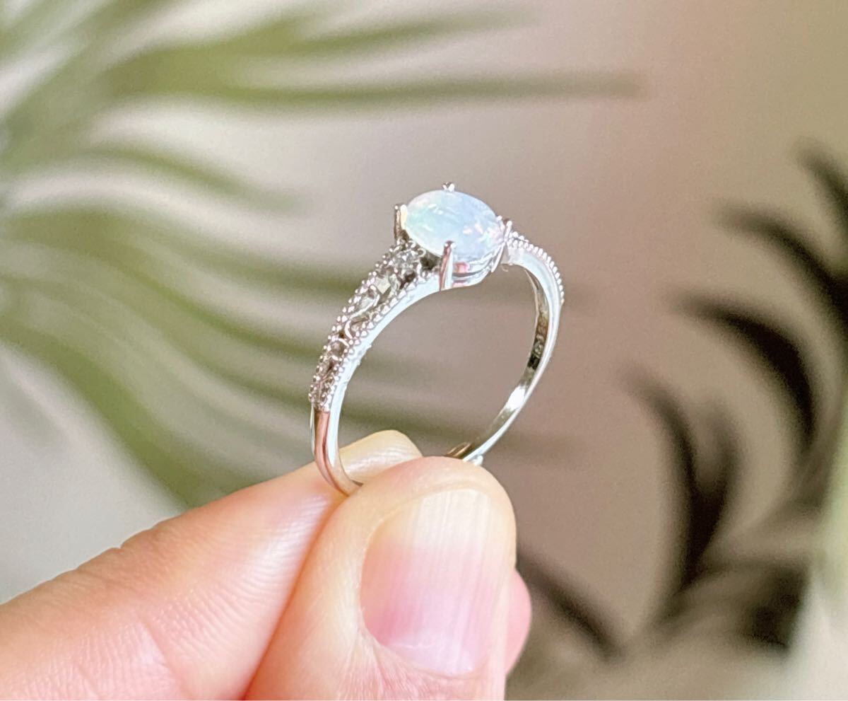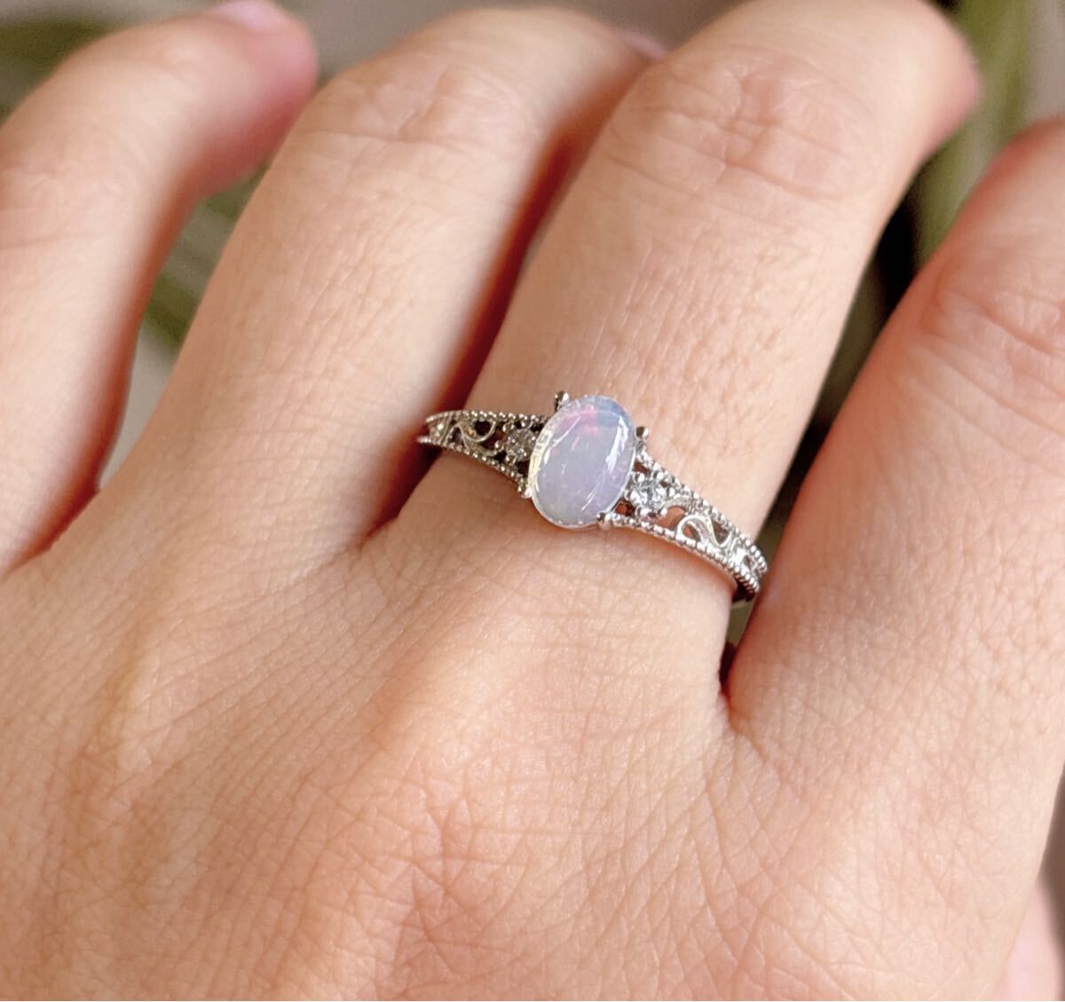天然石 シルバーオパール リングのサイズ約:5.2mm*7mm*厚さ4.6mm;