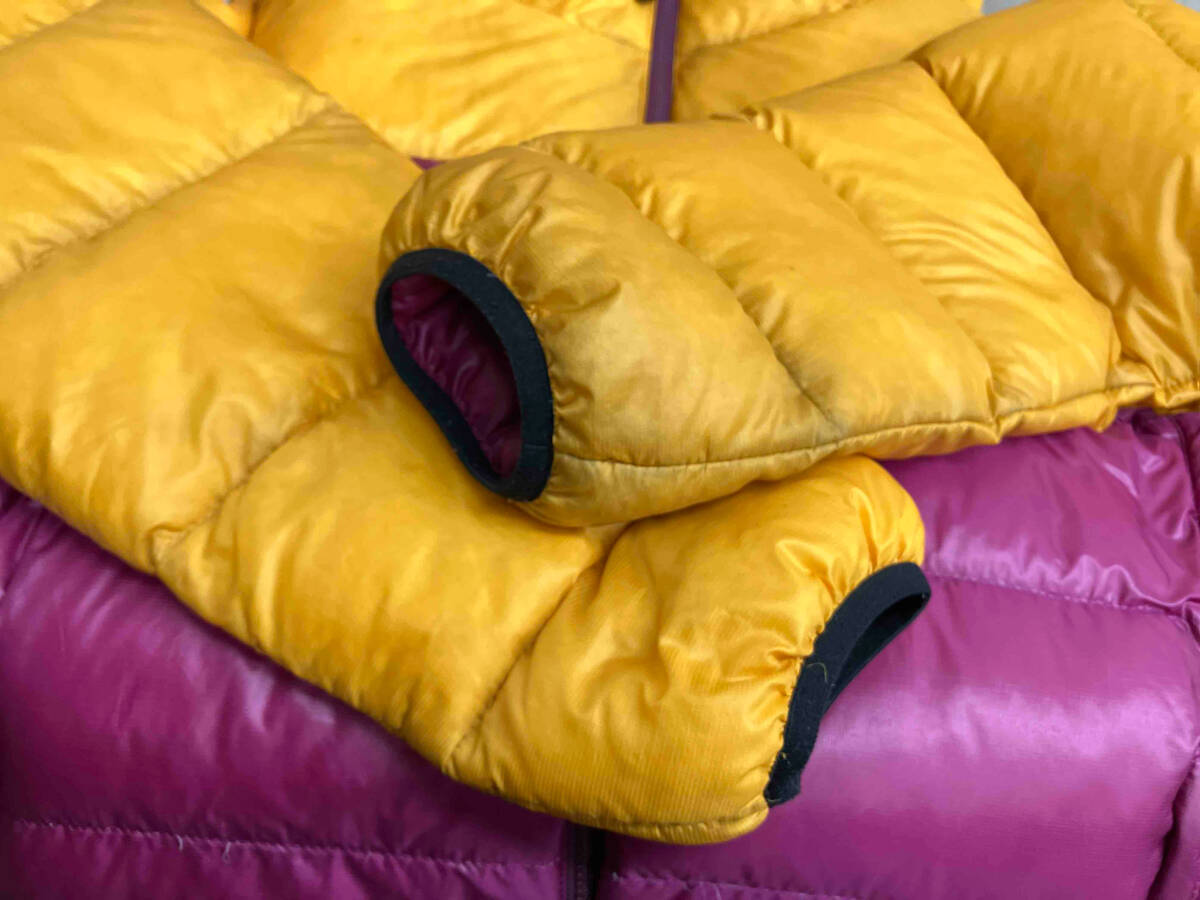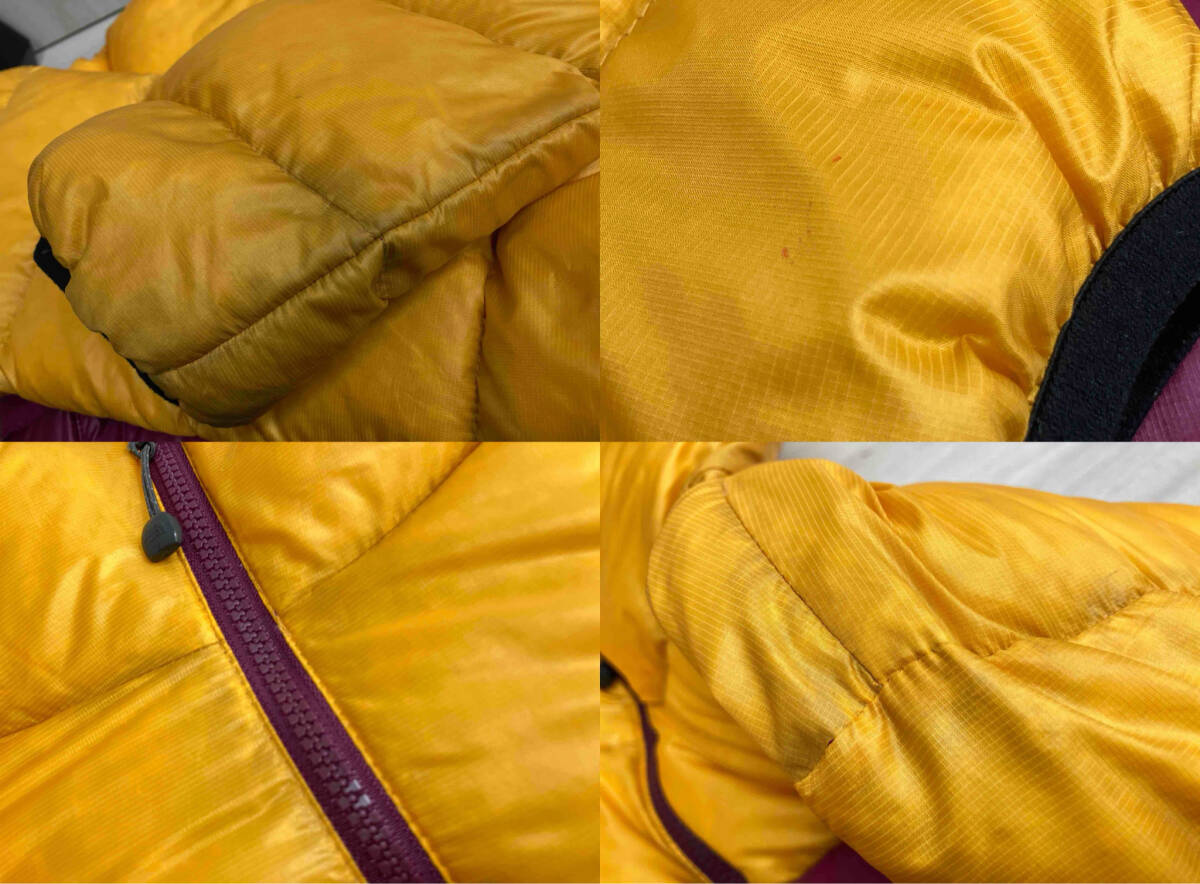 | シミ汚れあり、袖口汚れあり、中の羽毛ヨレ多数あり |