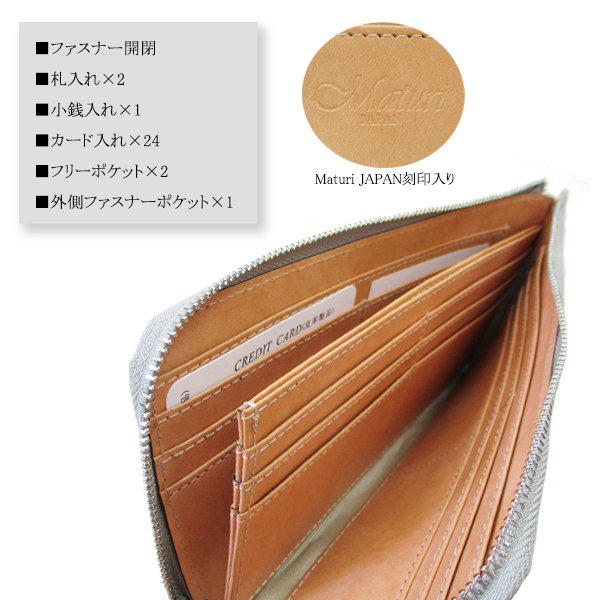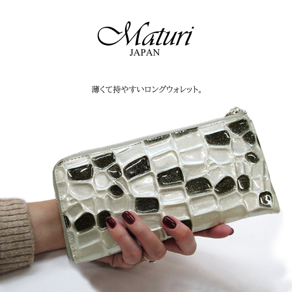 心地よい手触りの凹凸に煌びやかなラメが光る、L字ファスナーの長財布。 表面はエナメル加工で、多少の水滴もサッと拭き取れます。 アピールポイントは何と言っても収納力。 クレカやポイントカードがすべて入ってしまうほどのカードポケットに、お札入れ等の大きなフリーポケットが多く、自由に収納できます。 小銭や小さな鍵、スマホまで入る万能なお財布は、まるでミニバッグ。 ミニマリストにはピッタリ。 L字を開くと中仕切りがあり、仕切りの両側にもカードを収納できます。 全体が見やすく、ポケットが大きいのでお札の出し入れもスムーズ。 手放せないお財布です。 ■カラー:ブラック ■サイズ(約):縦10.4cm×横21.3cm×マチ1.8cm (商品によっては多少の誤差があります。予めご了承下さい。) ■素材:外側/牛革(クロコ型押しエナメル加工)、内側/ボンテッドレザー ■仕様:ファスナー開閉、小銭ポケット×1、札入れ×2、フリーポケット×2、カード入れ×24、ファスナーポケット(外側)×1 ■付属:Maturi専用BOX ■新品未使用 ※一部共通画像使用 【ご注意】 ※商品によって柄は異なります。柄の指定はできません。 ※新品未使用ですが、稀に製造過程による柄のぼやけ・天然皮革のシワによる傷のようなラインがございます。 細かい傷や汚れについても、不良の対象にはなりませんので、予めご理解下さい。 ※ご覧のモニターやブラウザの設定、照明等により、画像と実物の色合いが若干異なる場合がございます。 これらについては予めご理解頂いた上でご購入下さい。 | |
