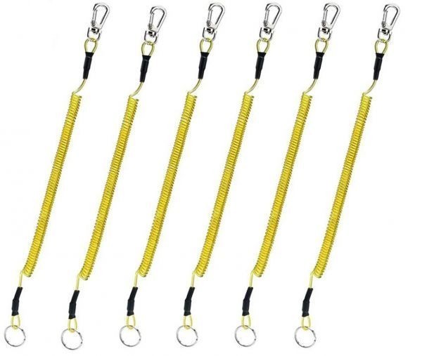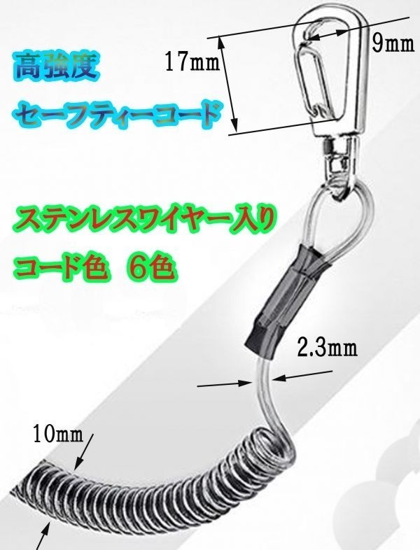 | 安全ワイヤーコード セーフティ-コード ワイヤーキーホルダー 落下防止 ストラップ 6本組 ステンレスワイヤー入り 最大伸長1.5m スパイラルコード ワイヤーコード カラビナ 小さなカルビナ フック | |||