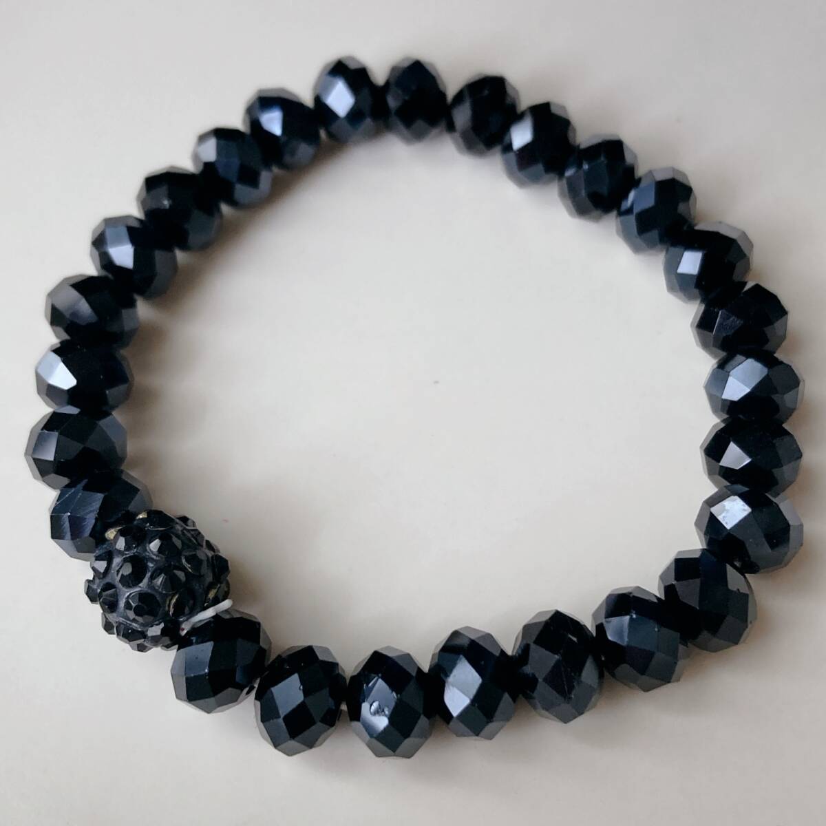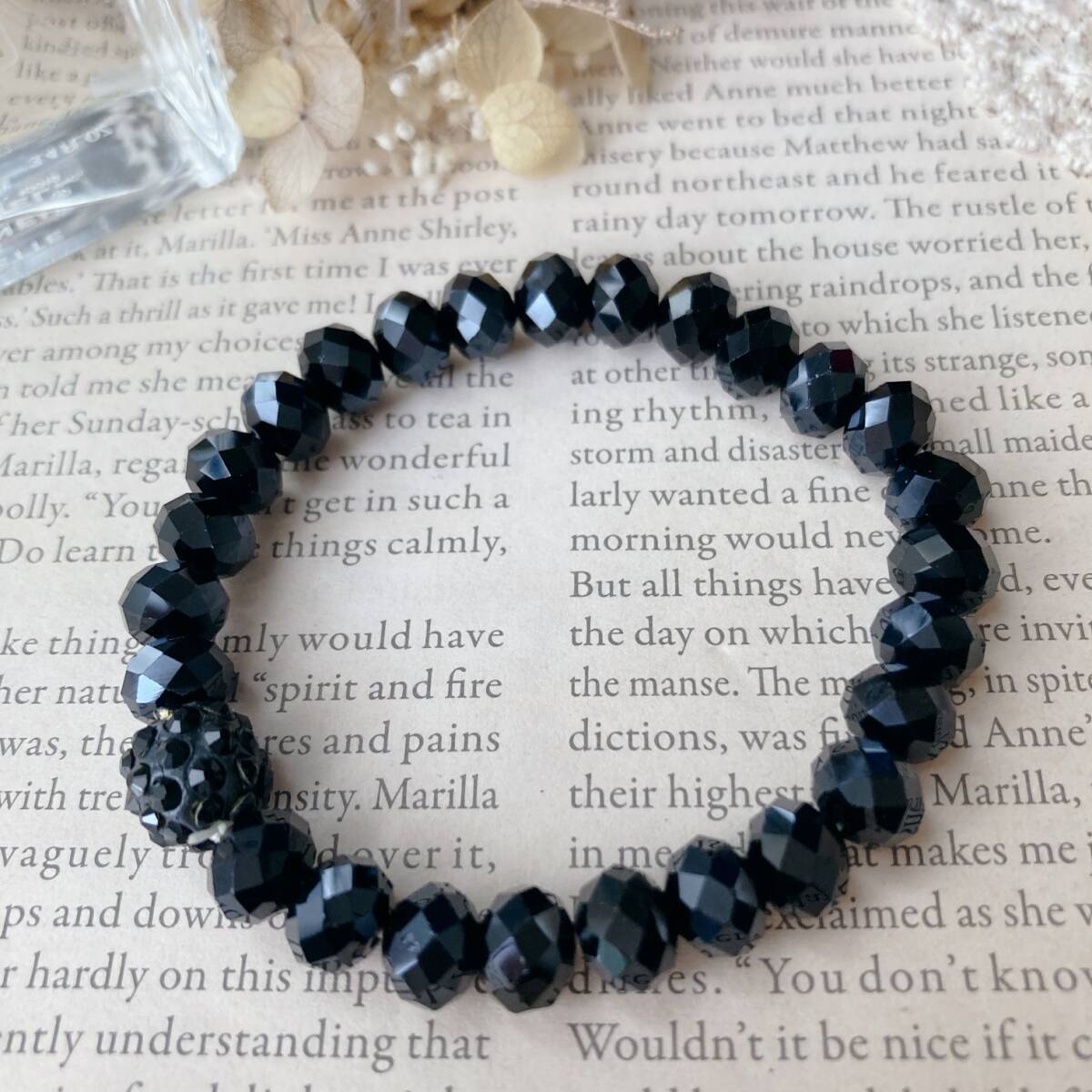 ブレスレット ブラック ガラスビーズ 多面カット キラキラ ラズベリーボール 黒伸縮☆Vintage jewelry accessories R0084