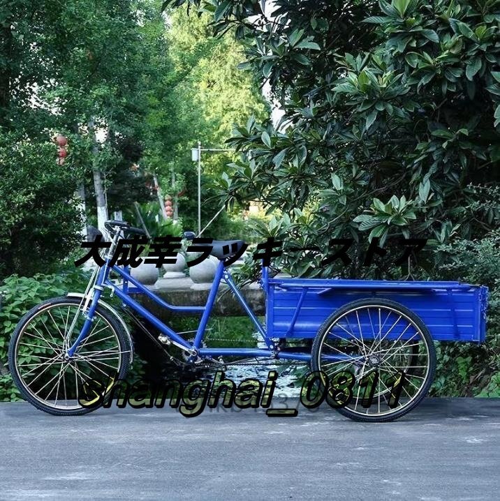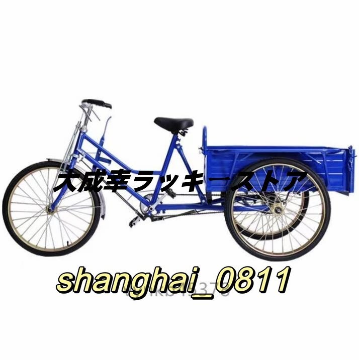 強くお勧め★ 大人用貨物三輪車 前輪24インチ・後輪20インチ 載荷重80kg ダブルブレーキ 三輪車 大容量 後カゴ付き ブルー U242