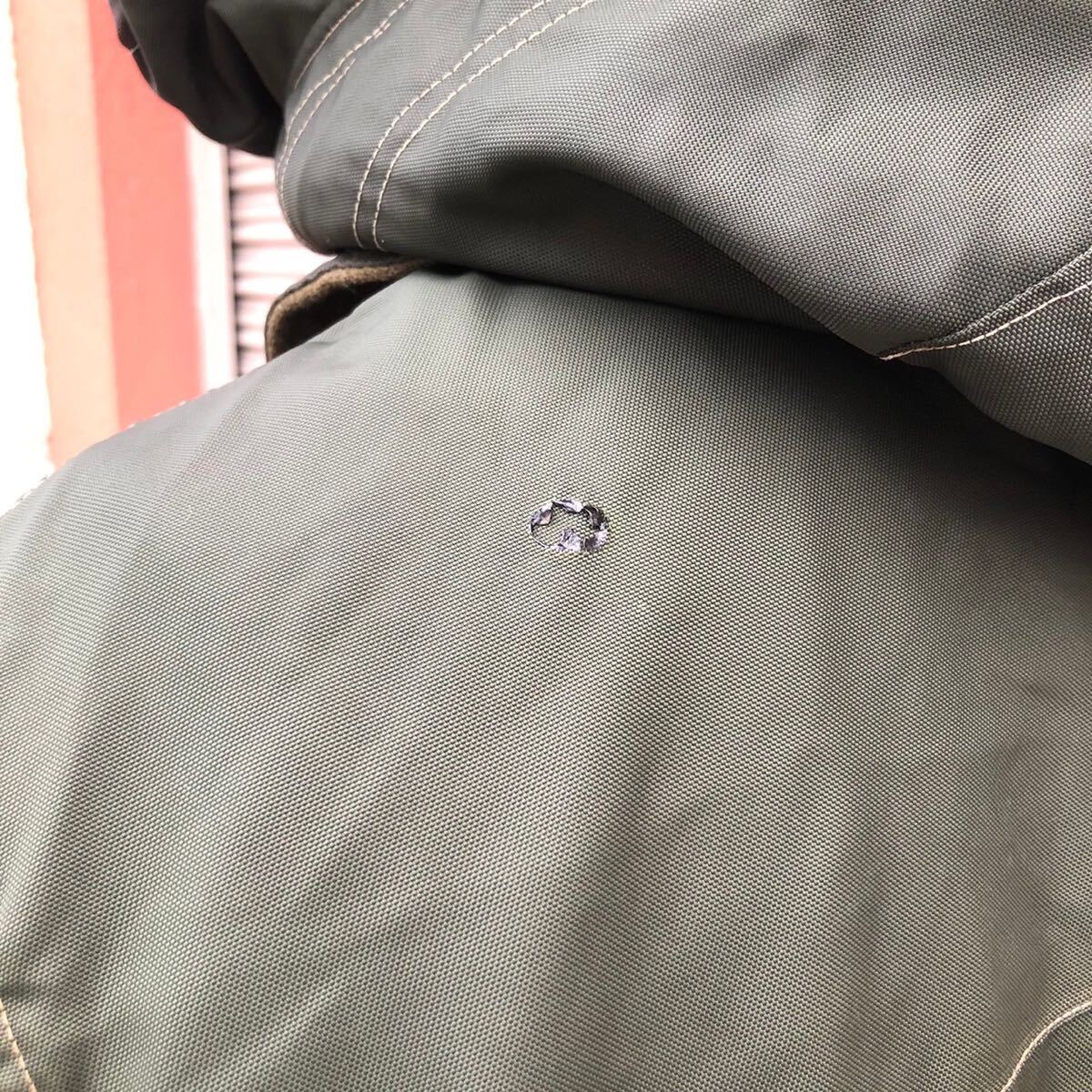 コンディション : 薄焼け、小さいダメージ穴箇所あり。フロントジッパーに欠けありますが、開閉に問題ありません。