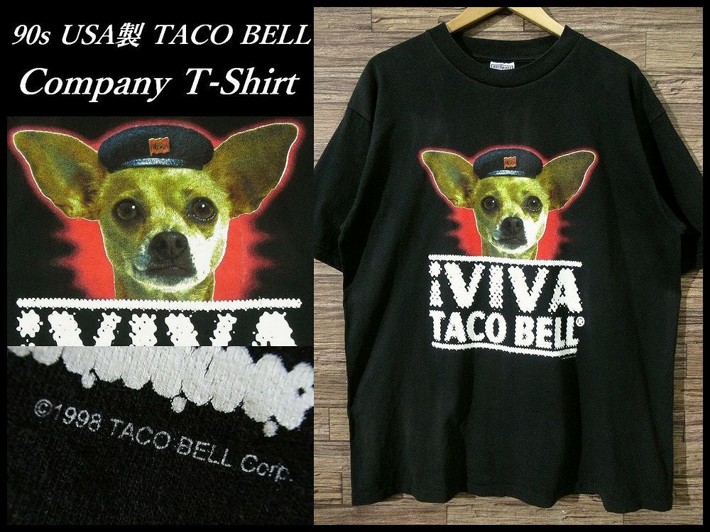 送料無料 希少 XL 90s ビンテージ USA製 TACO BELL タコベル 1998年 コピーライト入り チワワ ロゴ 企業物 半袖 Tシャツ シングルステッチ