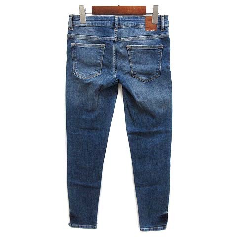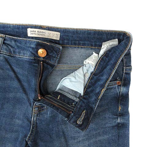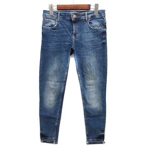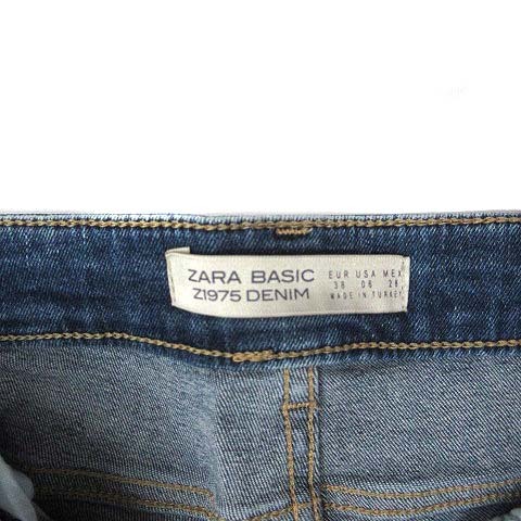 ザラ ベーシック ZARA BASIC デニムパンツ ジーンズ ストレッチ カットヘム ブルー 青 38 レディース