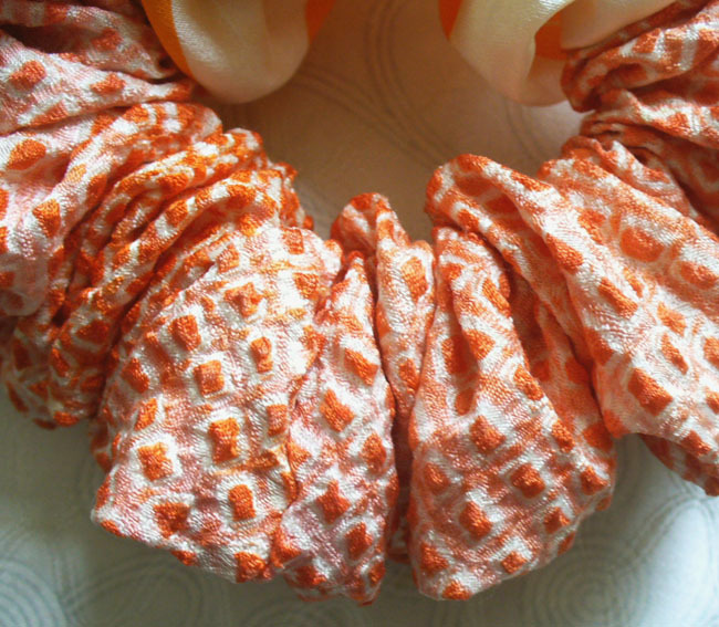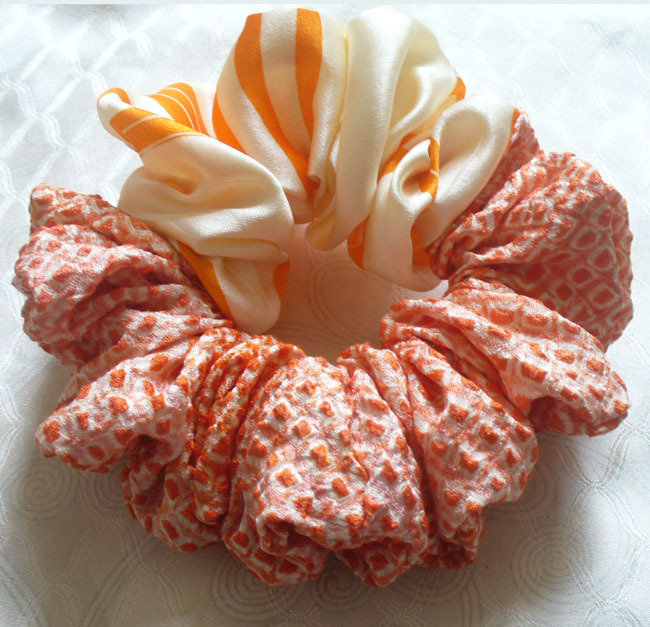 ゴム交換可能 総絞り鹿の子・羽裏 フリル フリル シュシュ 着物リメイク シルク 和柄 手縫い ハンドメイド リメイク 着物 和物