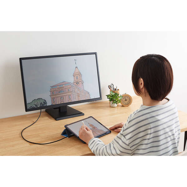 | ●DisplayPortポート搭載のディスプレイなどに映像を出力できる変換ケーブル。 USB Type-Cポート搭載パソコンなどの映像信号を、 DisplayPortポート搭載ディスプレイなどに映像を出力することができ、 画面複製と画面拡張に対応 | |
