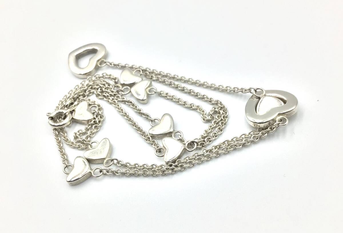 ご覧頂き有難う御座います。 トラブル防止の為、ご入札の前に必ず説明文等最後までお読みになりご理解の上入札宜しくお願い致します。 気持良く使って頂け為に、超音波洗浄・クリーニング・ 磨き・3DUV紫外線消毒99.9除菌をおこなっております。 アフターケアー用、クロス拭き1枚付(約7.5×7.5㎝)プレゼント 商品真贋鑑定済みでございますのでご安心してご購入下さい。 【ブランド】 TIFFANY&Co. ティファニー 【商品名】 ハート リンク ラリアット シルバー SV925 ネックレス 【カラー】 シルバー 【サイズ】 首周り約49cm 【重量】 約8.5g 【付属品】 なし 【管理番号】 21514 【商品状態】 :AB スレアテはありますが、まだまだ活躍して頂ける商品です。 N:新品/未使用品 S:新品同様綺麗な商品 SA:新品同様に近い美中古商品 A:薄傷、汚れが少ない、全体的に状態の良い商品 AB:多少の傷、汚れがみられる中古商品 B:傷汚れがみられる中古商品 BC:傷汚れが多くみられる中古商品 C:かなり傷汚れが多くみられる中古商品 E:難有/ジャンク扱い ◎お休みなども御座いますので、即発送希望の方は 自己紹介欄に記載いたしておりますので必ず御覧確認下さい。 | ||